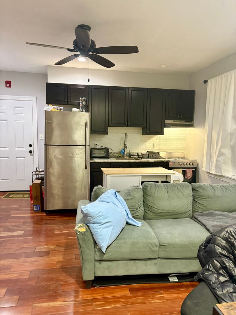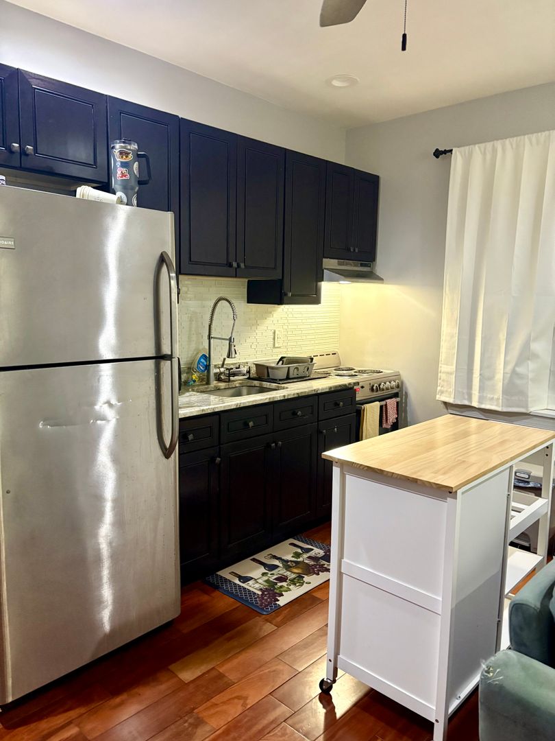 Renovated kitchen with hardwood floors throughout the whole apartment! Tons of natural light and large living room space. First floor apartment.