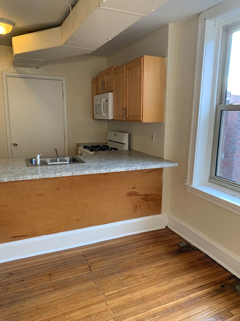 Hardwood floors throughout and renovated kitchen with dishwasher. On-site laundry facilities.