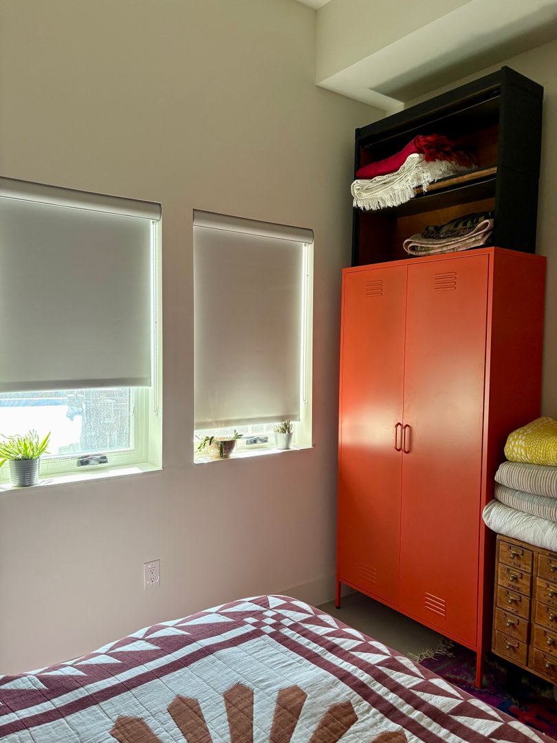 High ceilings and natural light throughout the apartment. Central HVAC. In unit washer/dryer. Shared roof deck and fitness room on site.