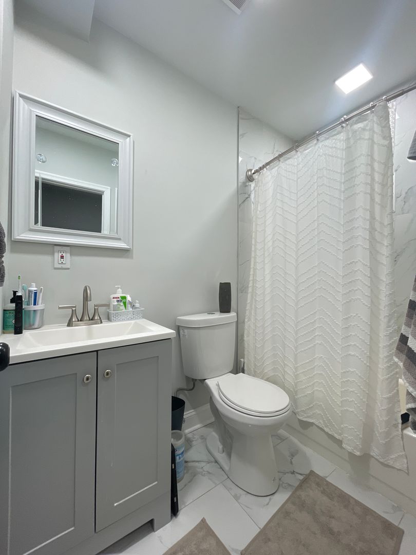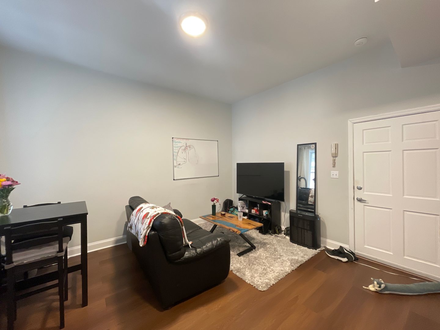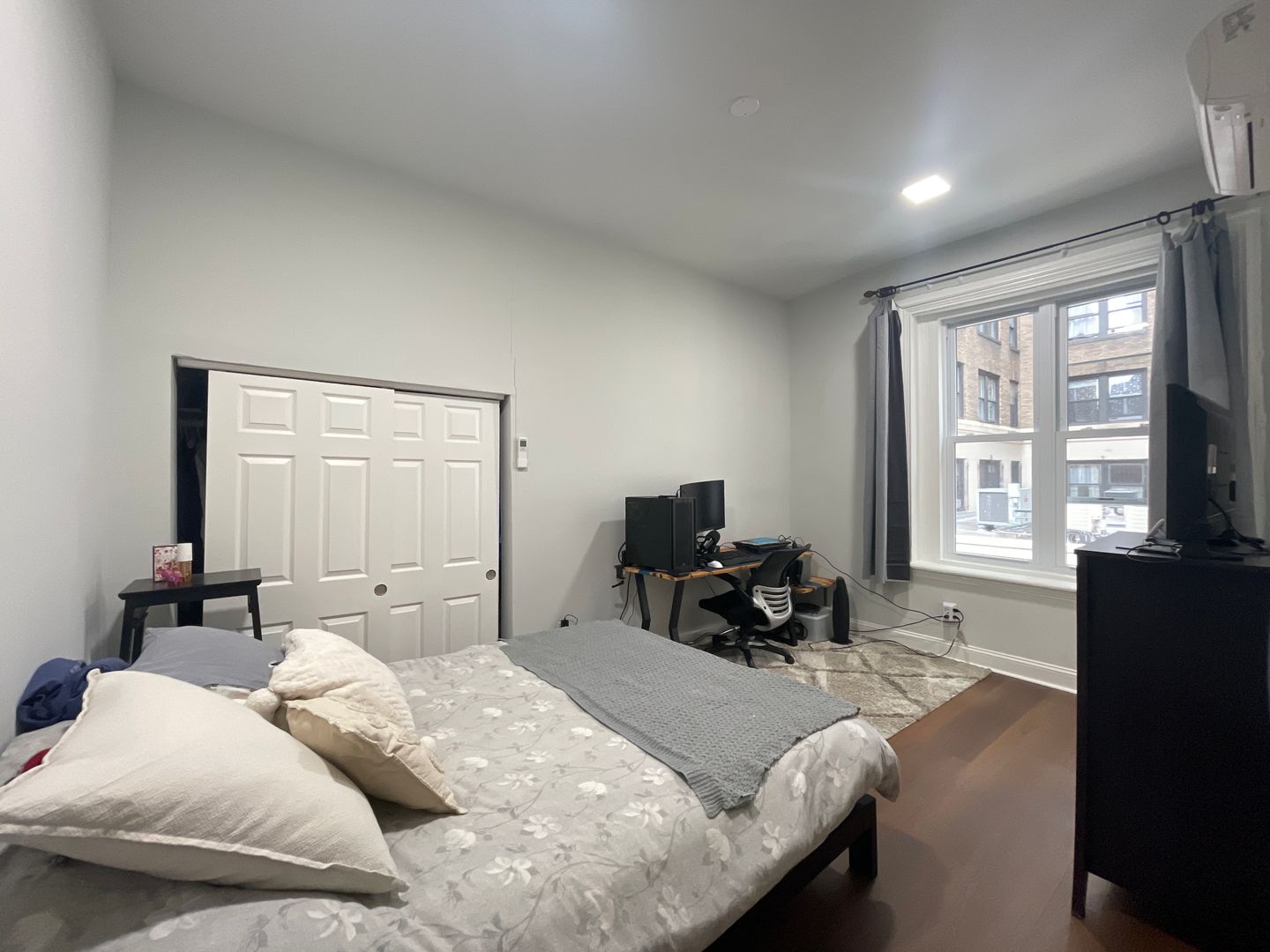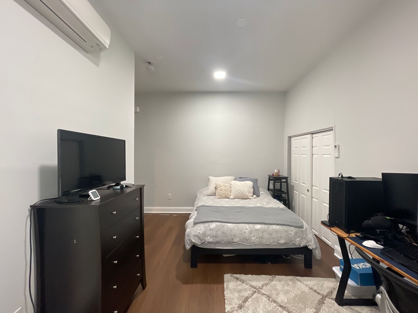 Enter the apartment to an open living room/kitchen. The kitchen features stainless steel appliances, quartz countertops, and high end cabinets. In unit washer/dryer. New windows throughout the apartment which receives a ton of natural light. Spacious bedroom that can easily fit a queen size bed, nightstands, desk, etc. Large closet in bedroom. Beautifully tiled bathroom/shower with modern finishes. Central HVAC.