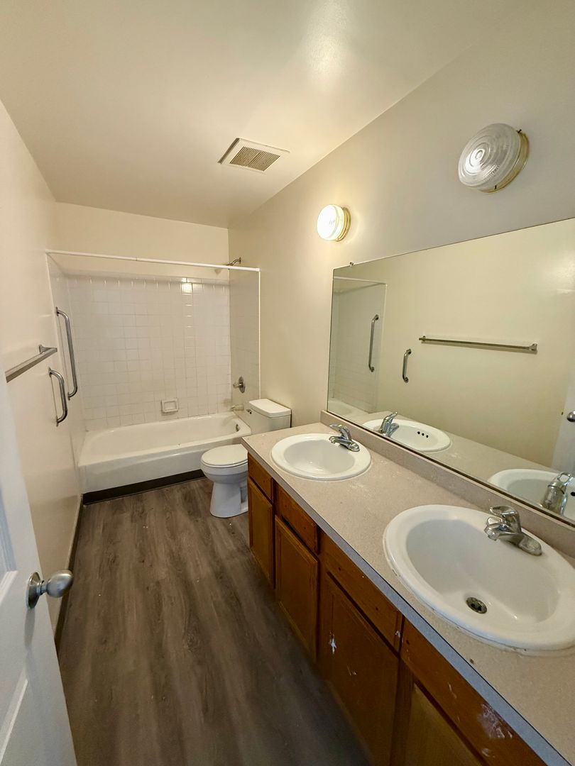 - Fully tiled, HUGE bathroom with modern fixtures; DUEL SINKS