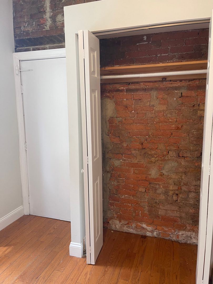 Unit is on the first floor and features hardwood floors, built in microwave, renovated bathroom and exposed brick! Coin operated laundry available for residents in the complex.