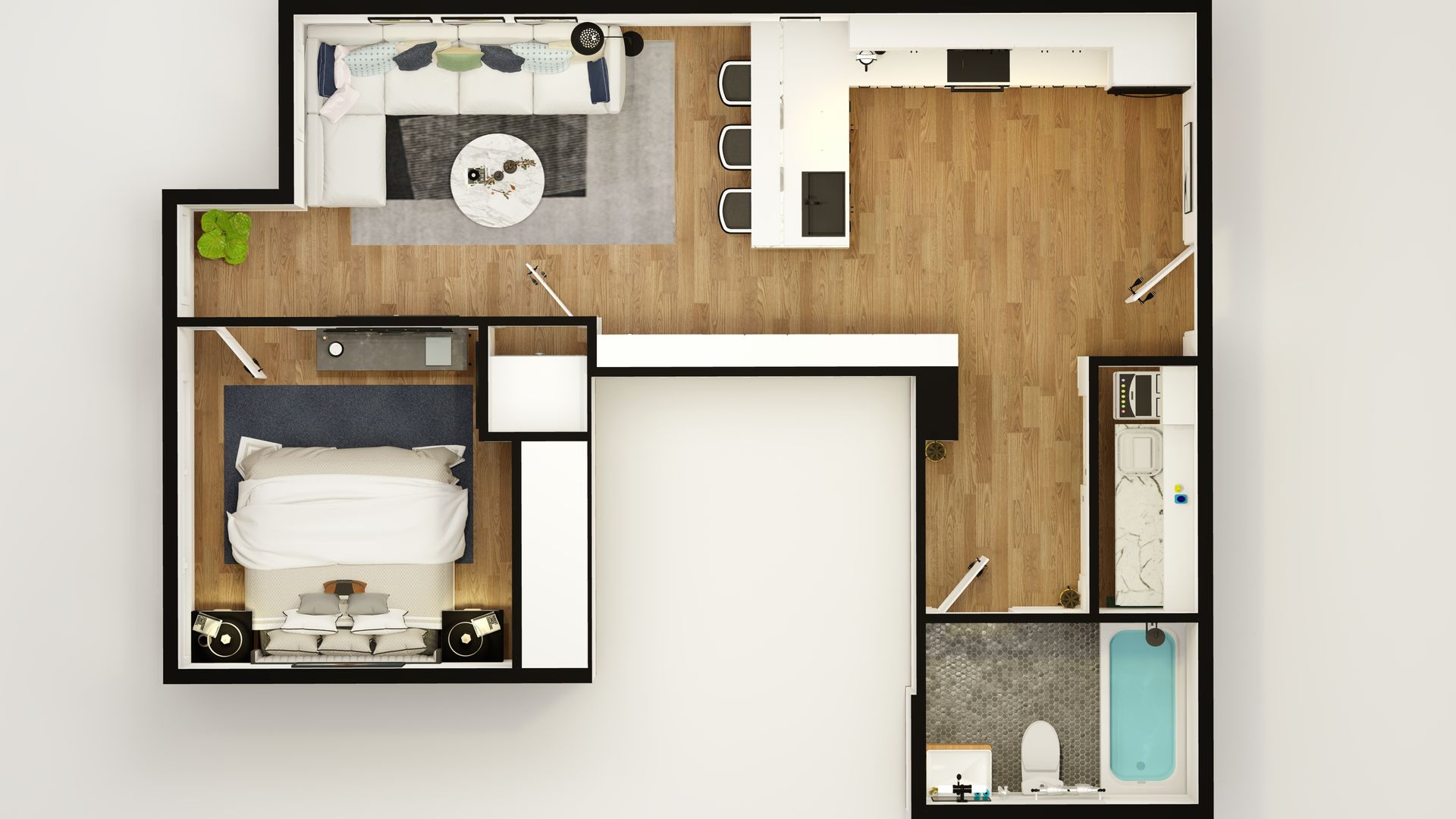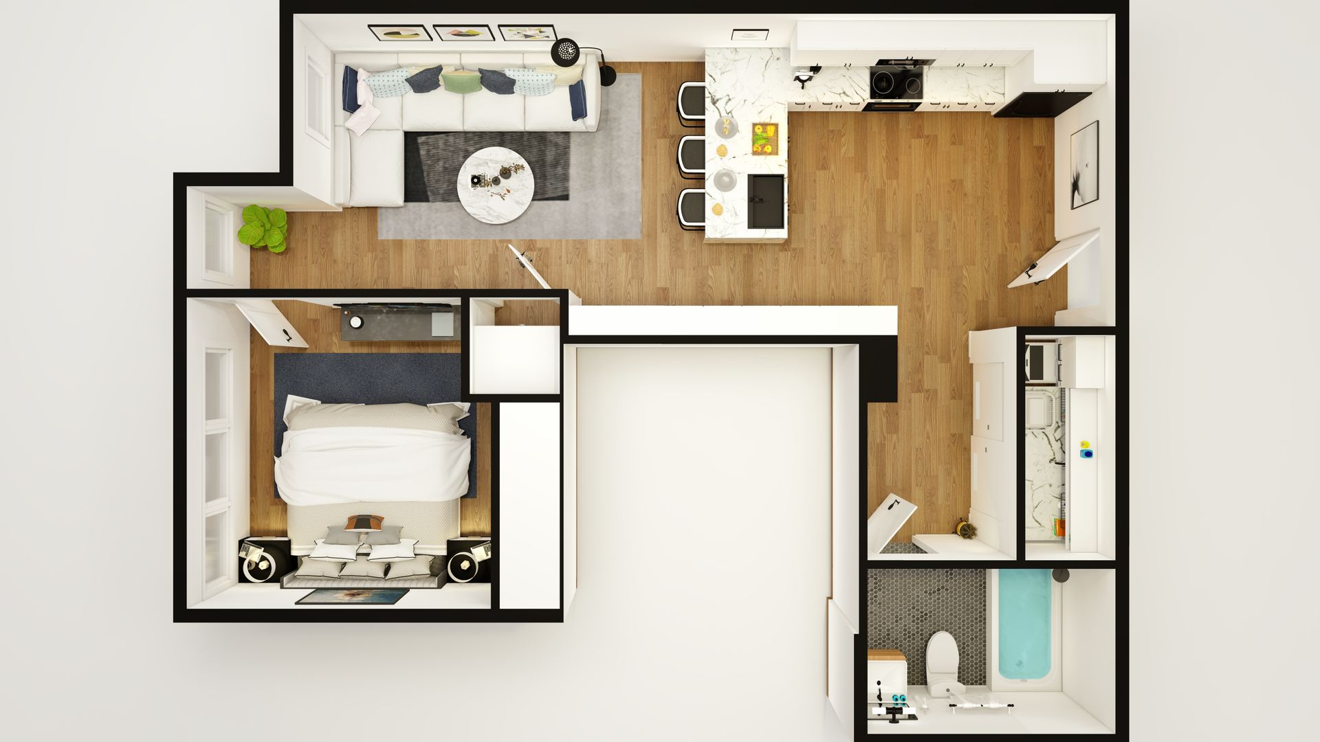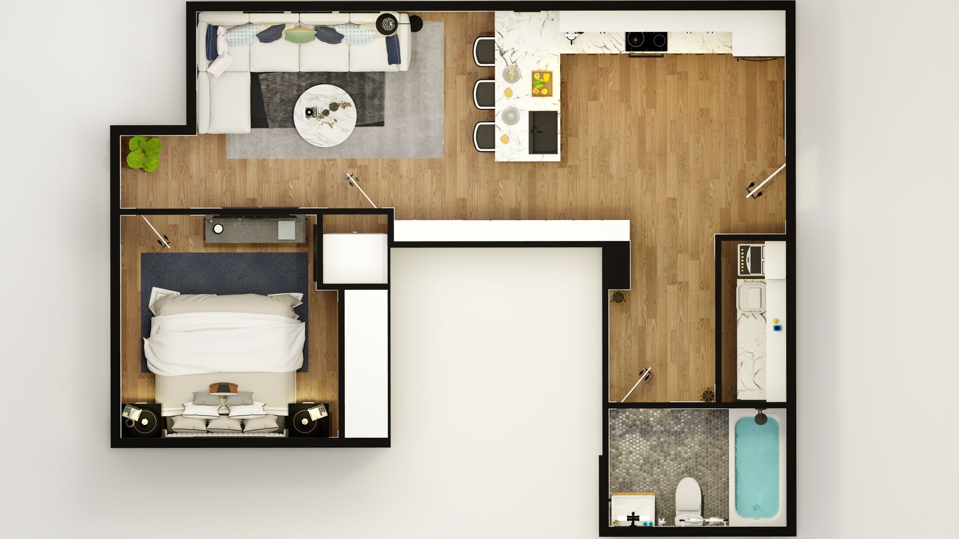 Step outside to the private access balconies or the fully furnished shared roof deck. On ground level, The Vienna offers various amenities for the convenience of our residents. Features such as the lobby, mail room, elevator, and fully equipped gym are available to all who call The Vienna their home. The next four floors of The Vienna are each comprised of seven units consisting of either one bed/one bath, or two beds/two baths.