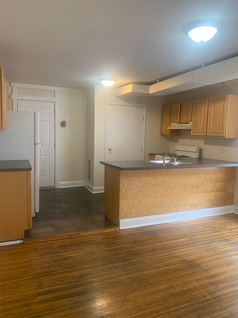 Sunny with hardwood floors throughout! Kitchen includes dishwasher, built-in microwave and garbage disposal. Gas cooking. Pet friendly. Close to everything including public transportation, shops and restaurants.