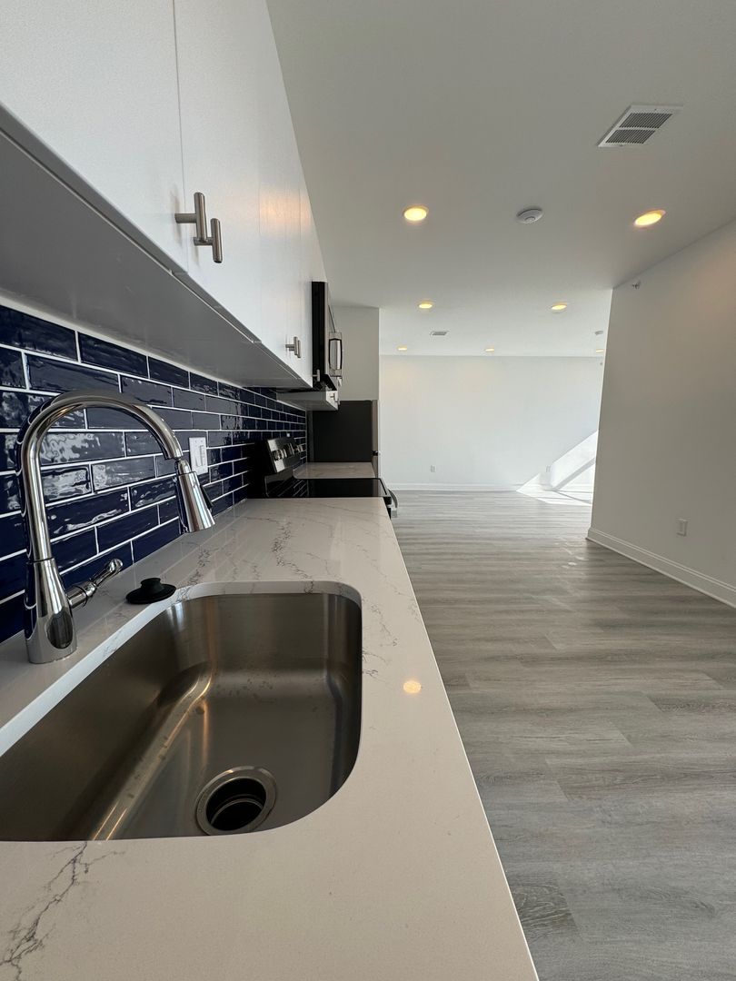 Repurposed warehouse converted into luxury apartments. Enjoy hardwood flooring throughout giving you that classic look and feel. Excellent kitchen with a TON of cabinet space, stainless steel appliances including full sized refrigerator, dishwasher µowave. Sleek kitchen design with modern cabinets, blue tile backsplash and gorgeous granite countertops, perfect to impress family & friends.