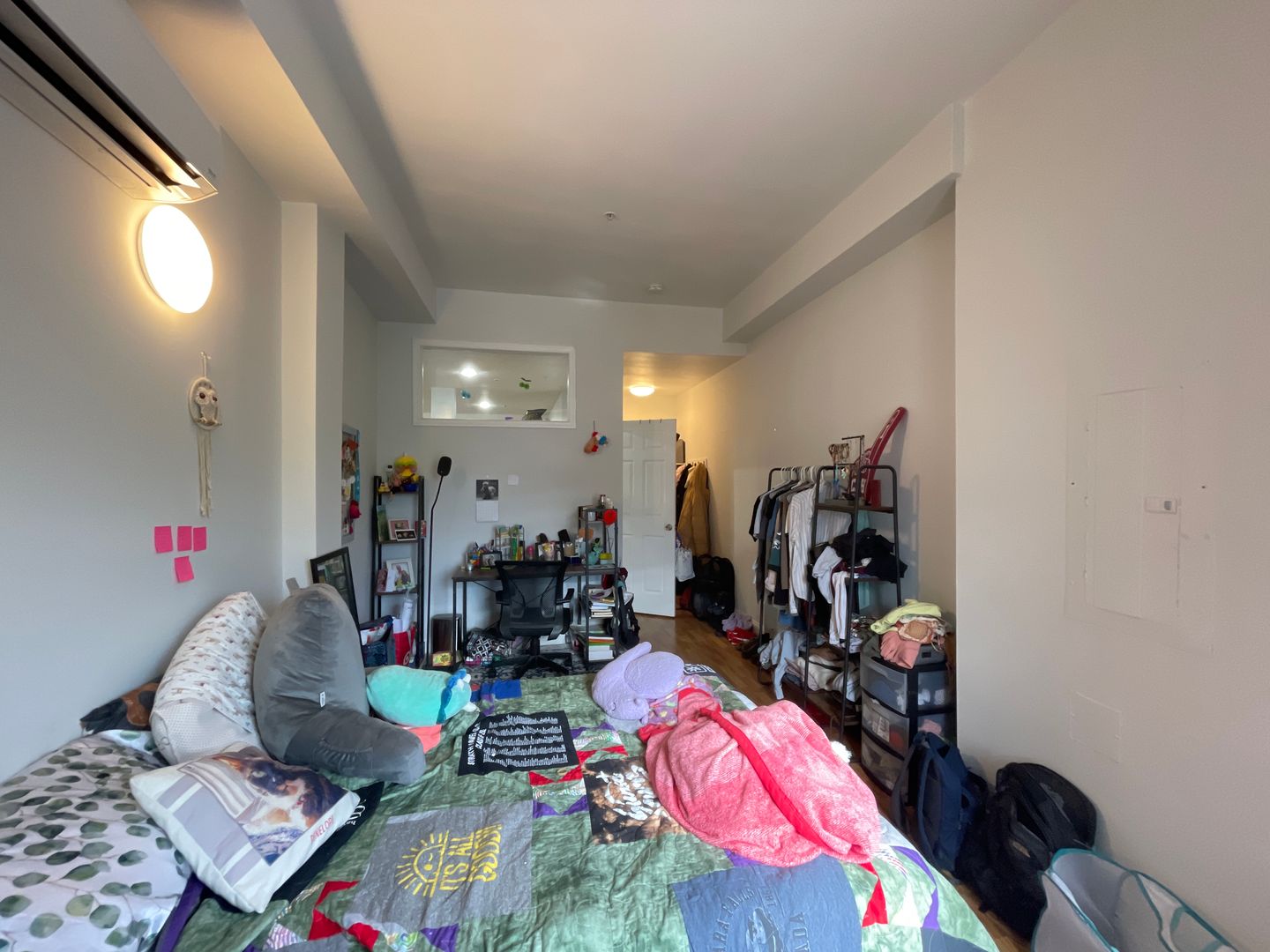 The building features secured key fob entry, an elevator, bike room, and fitness studio (that just received new equipment!).