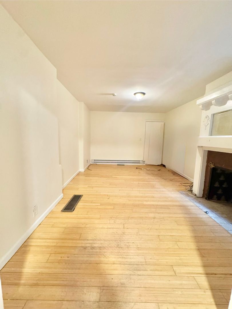 This charming 2-bedroom, 1-bathroom, 3rd-floor apartment features a front porch, hardwood floors, recessed lighting, in-unit laundry, and great natural light throughout.