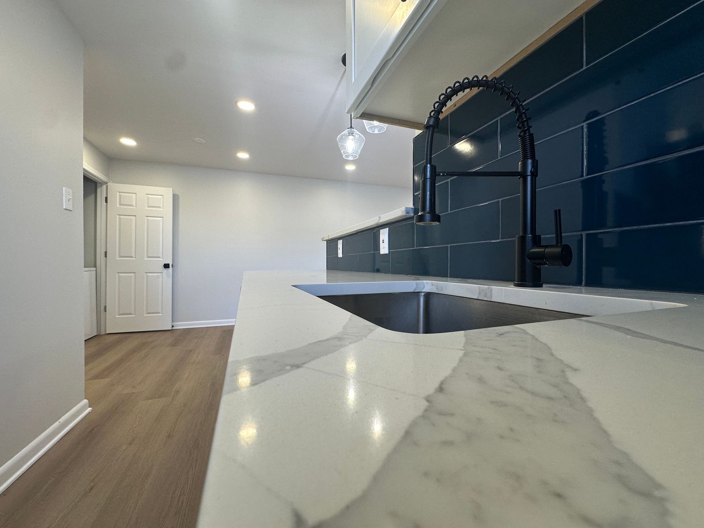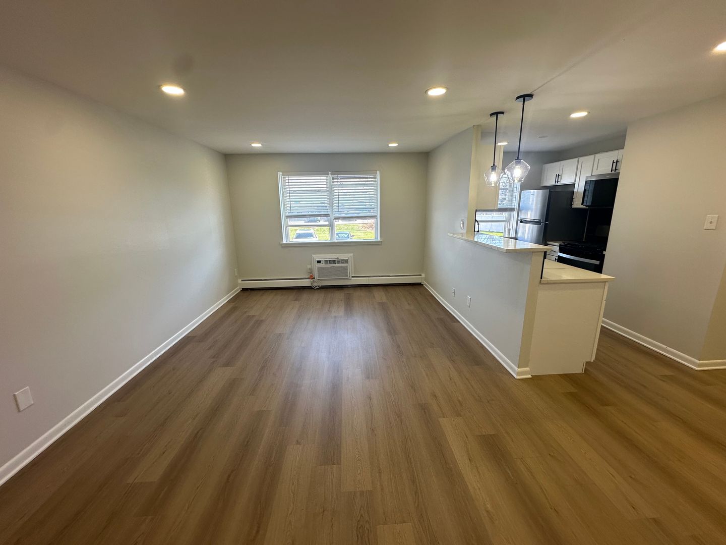 - Bright and open living area with modern lighting and a functional layout