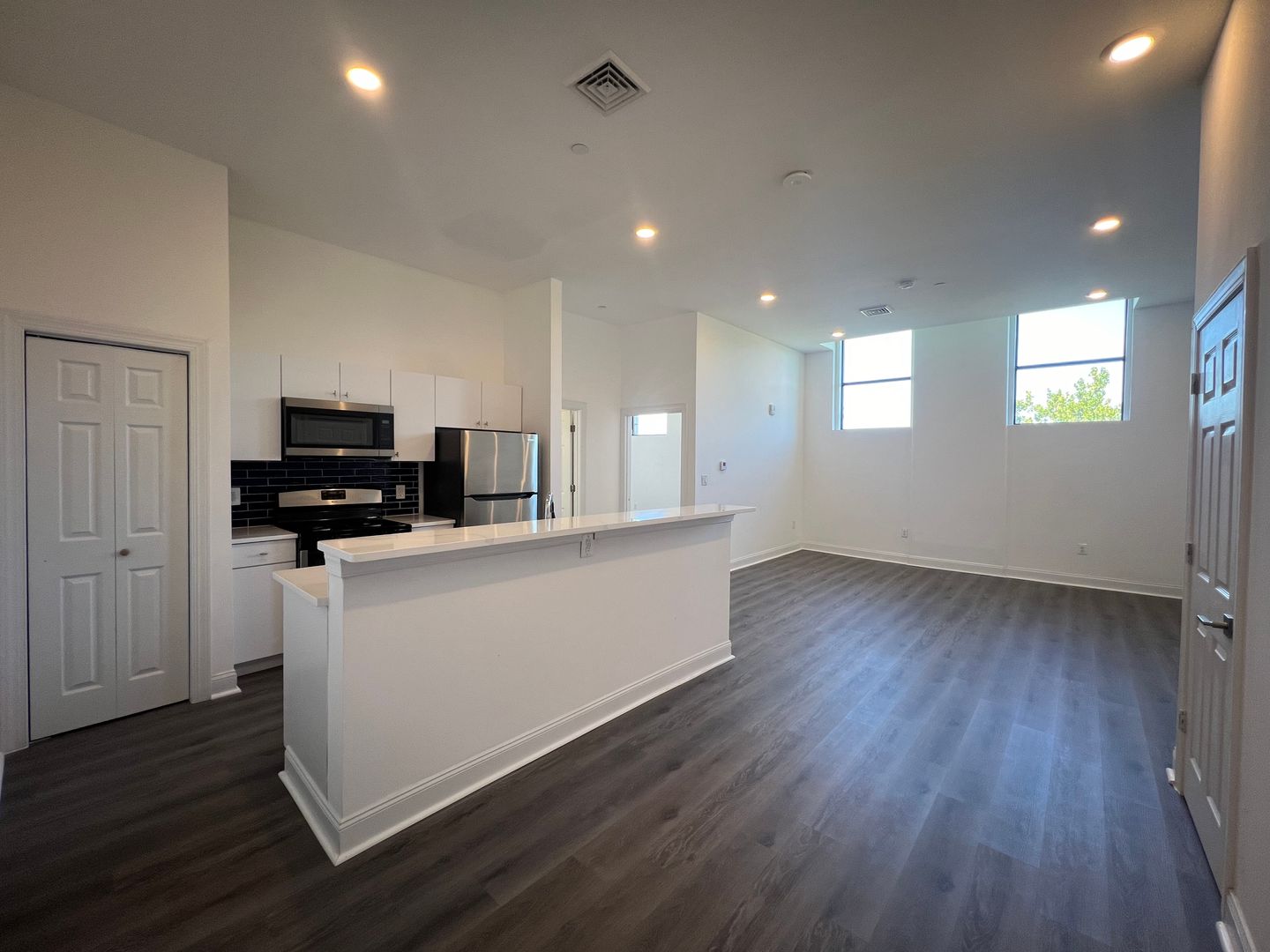 Enter the apartment to a spacious, open concept kitchen and living room that is flooded with natural light. The kitchen features stone counters, modern cabinets, and stainless steel appliances including full size gas range, full size refrigerator, dishwasher, and built in microwave. Large living room is perfect for a comfortable entertainment set up. Spacious bedroom can accommodate a queen size bed as well as other complimentary pieces of furniture. The bedroom also features a large, double door closet. Updated bathroom with tasteful finishes. In unit laundry. Central HVAC.