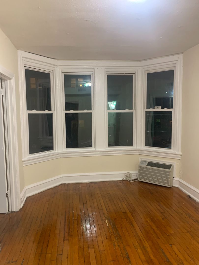Spacious one bedroom apartment available in July on first floor. Nice hardwood floors throughout. Living room features gorgeous bay windows for lots of natural light! Pet friendly building with a fee and shared app access laundry in the basement!