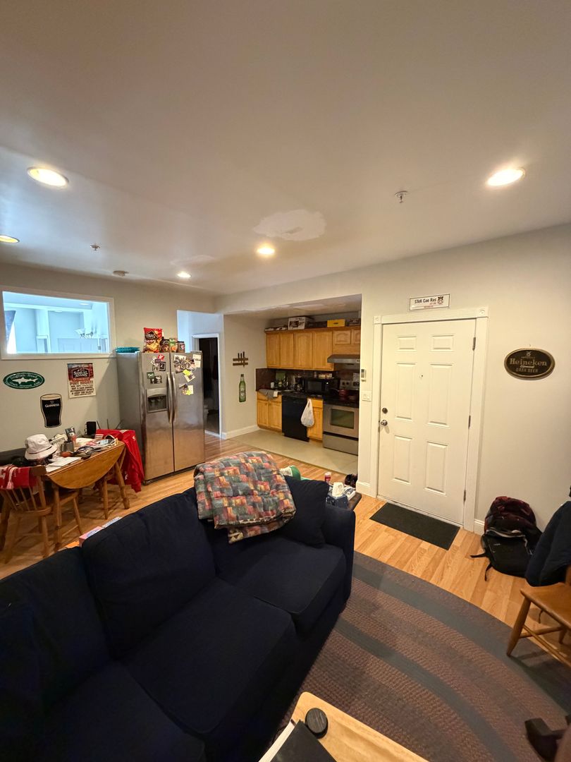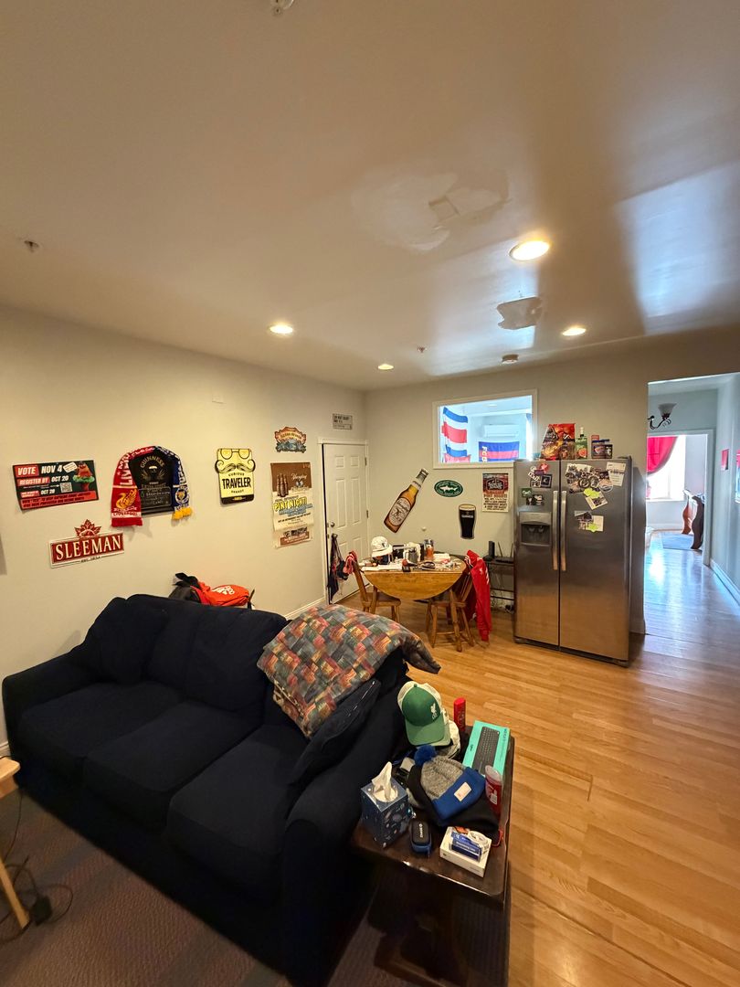 Walk in to a spacious kitchen and living room. Plenty of space for a large couch/entertainment set up and dining table. Kitchen features full size refrigerator, electric range, dishwasher, built in microwave, and garbage disposal. Both bedrooms are spacious with large closets and receive plenty of natural light with great views of the city. Spacious bathroom. In unit washer/dryer! Hardwood flooring throughout and high ceilings! Central HVAC.