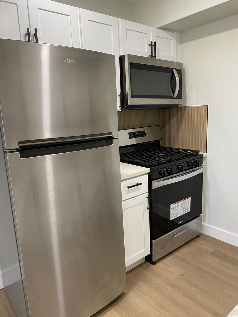 Located on the first floor with no steps, this apartment offers convenience and accessibility. Inside, you'll find new appliances, including a built-in microwave and a refrigerator, making meal preparation a breeze.