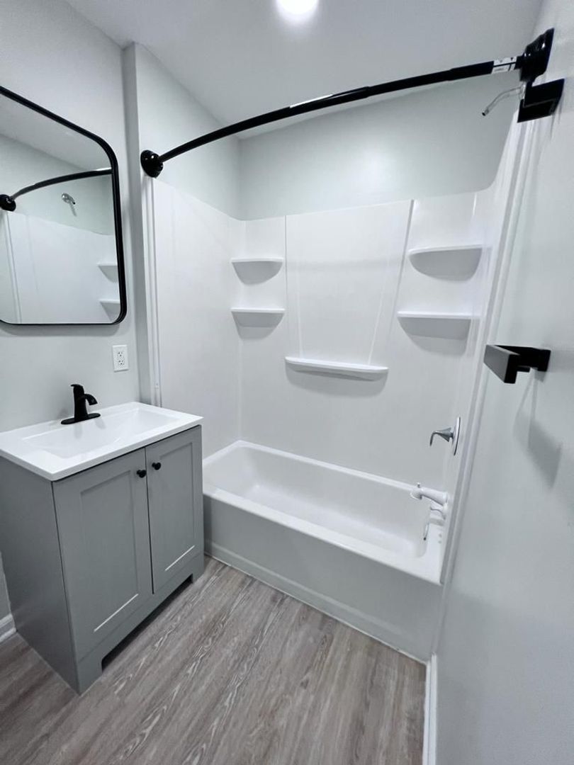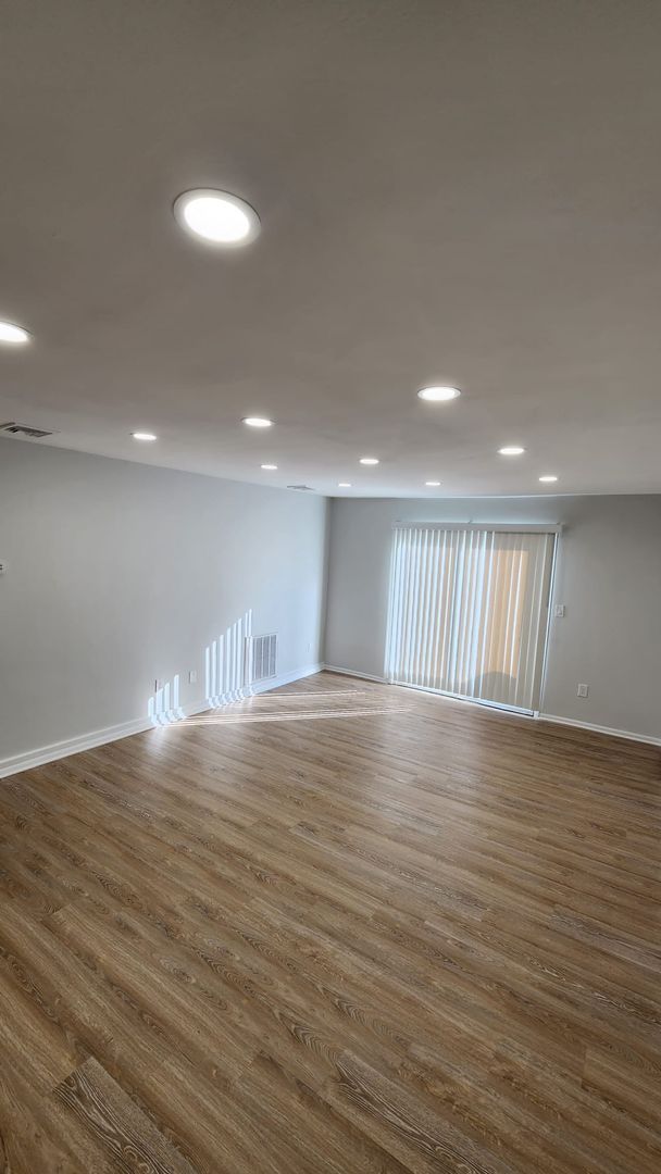 - Hardwood flooring throughout living and common area spaces