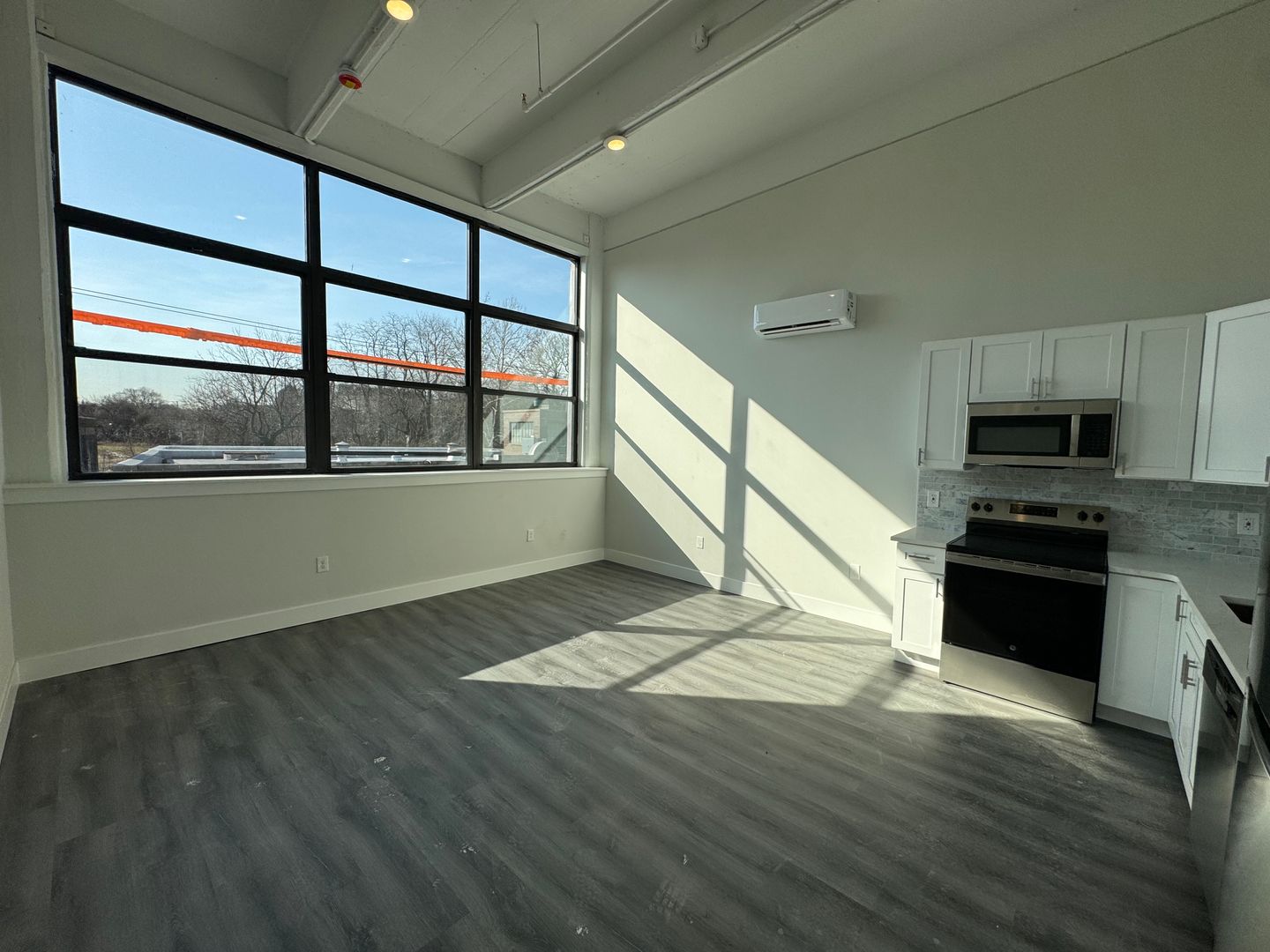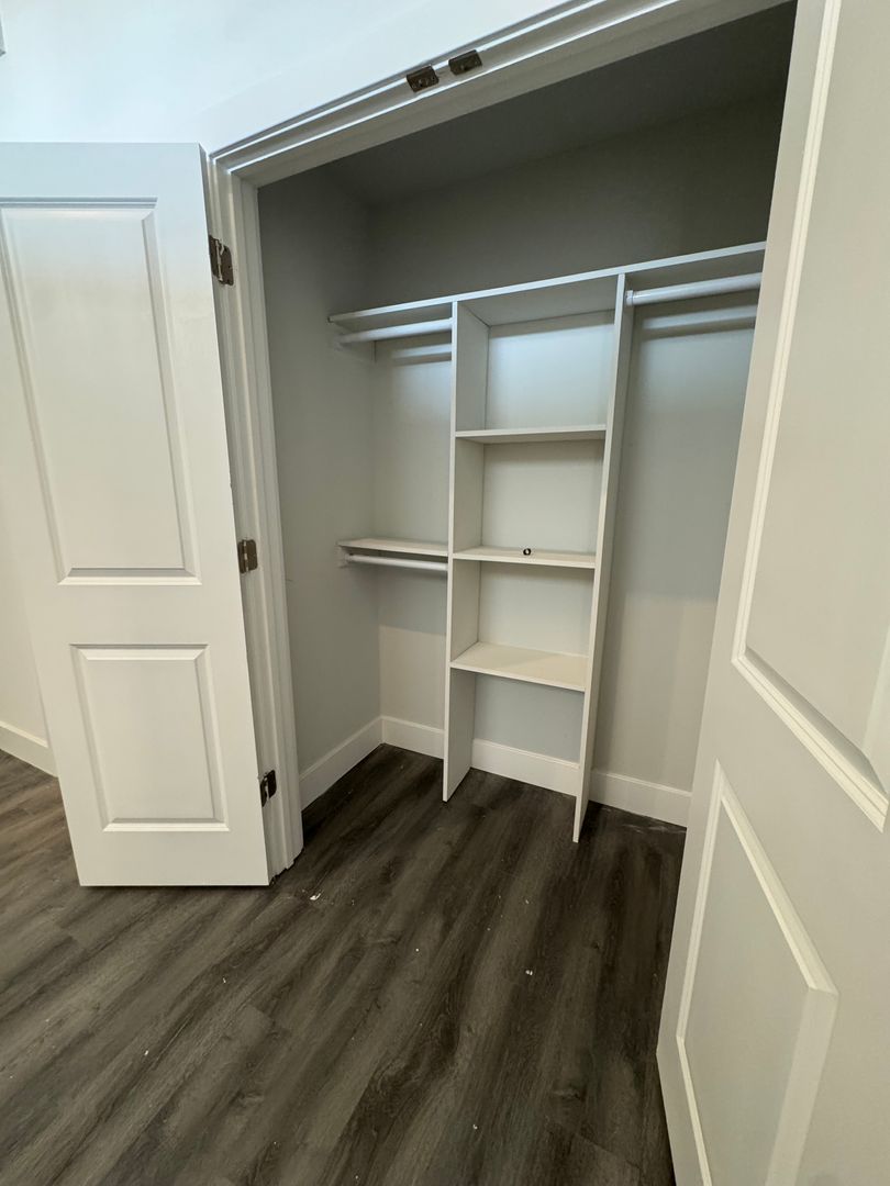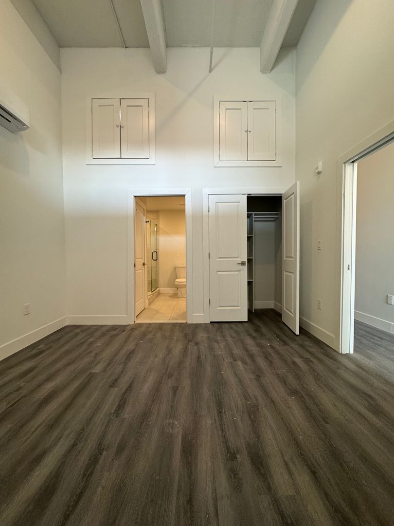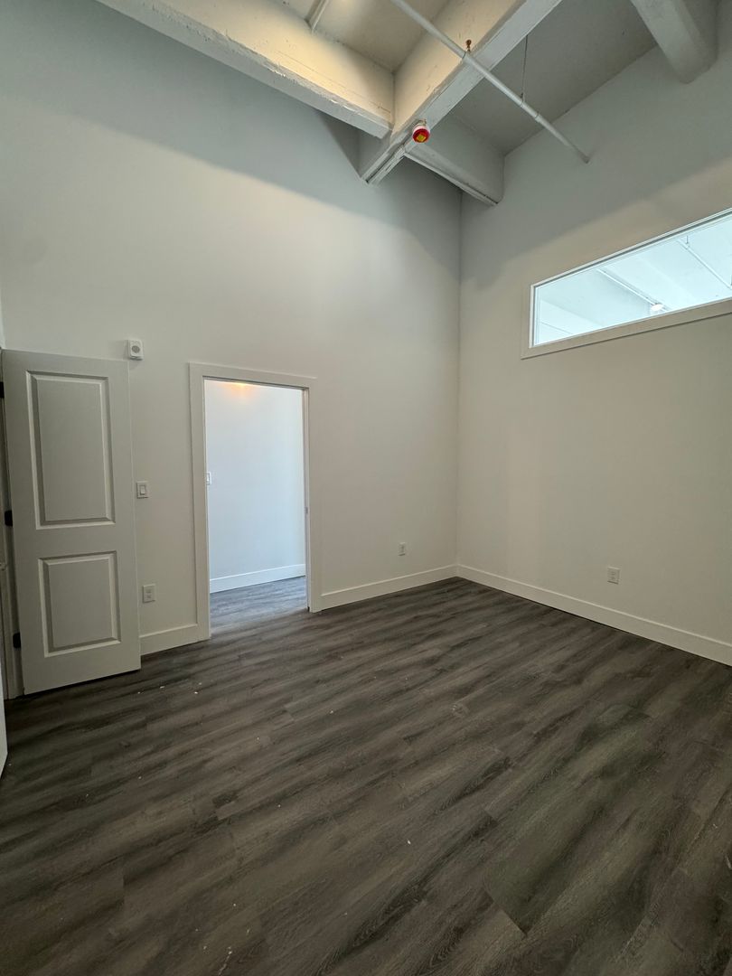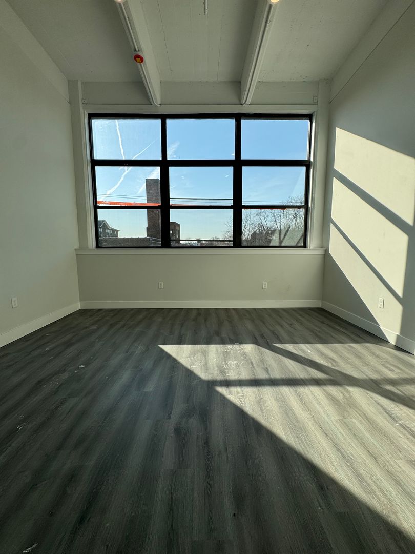 Large bedroom with plenty of closet space for your wardrobe and sneaker collection. Sun drenched bedroom with near to ceiling windows.