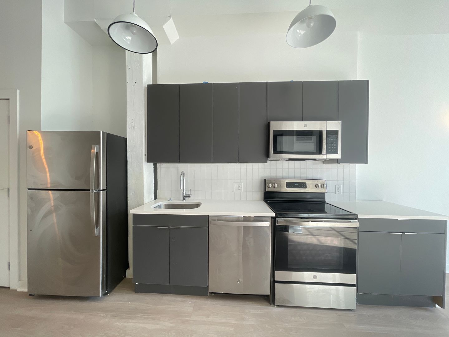 This newly renovated 1 BR features high ceilings with large windows that flood the space with natural light. The kitchen features stone countertop, modern cabinets, and stainless steel appliances including full size refrigerator, full size electric range, dishwasher, built in microwave, and garbage disposal. The bathroom features modern finishes and a tiled shower with bathtub. Bedroom can fit a full/queen size bed and other complimentary pieces of furniture.
