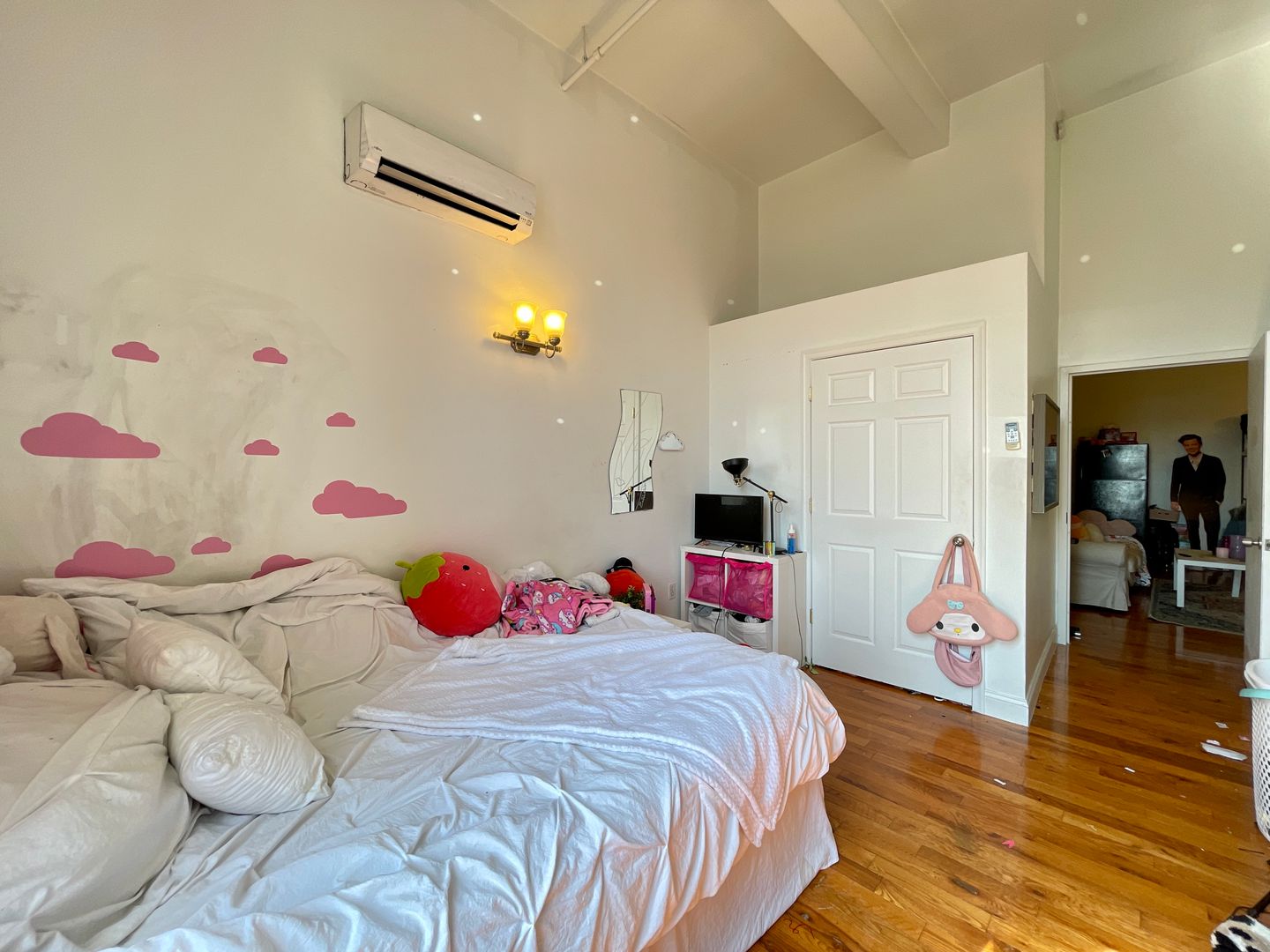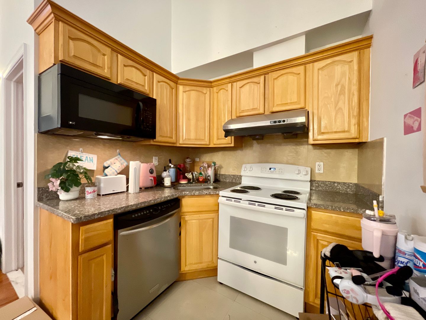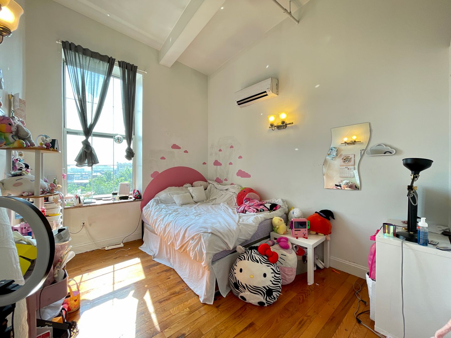 Walk in to a spacious kitchen and living room. Plenty of space for a large couch/entertainment set up and dining table. Kitchen features full size refrigerator, electric range, dishwasher, built in microwave, and garbage disposal. Both bedrooms are spacious with large closets and receive plenty of natural light with great views of the city. Spacious bathroom. In unit washer/dryer! Hardwood flooring throughout and high ceilings! Central HVAC.
