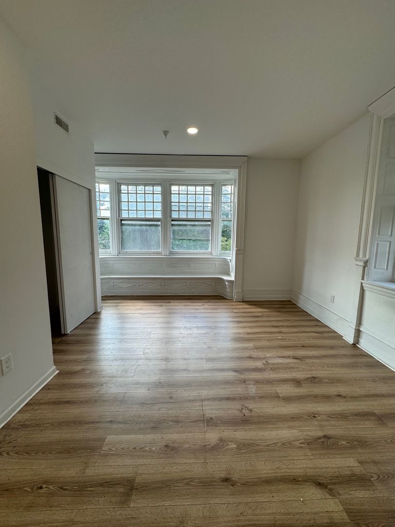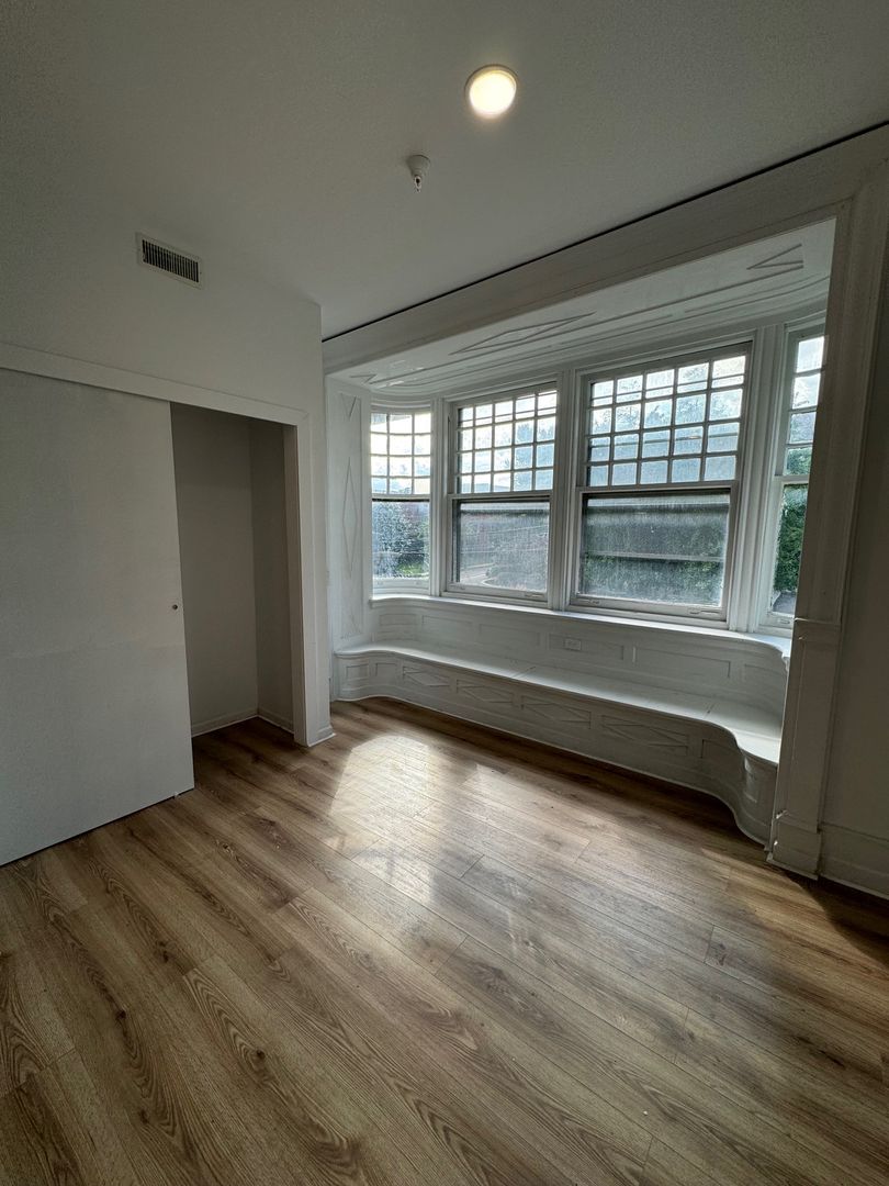 Bedroom over looks Johnson street with classic wood work and molding! Plenty of closet storage and hardwood flooring!