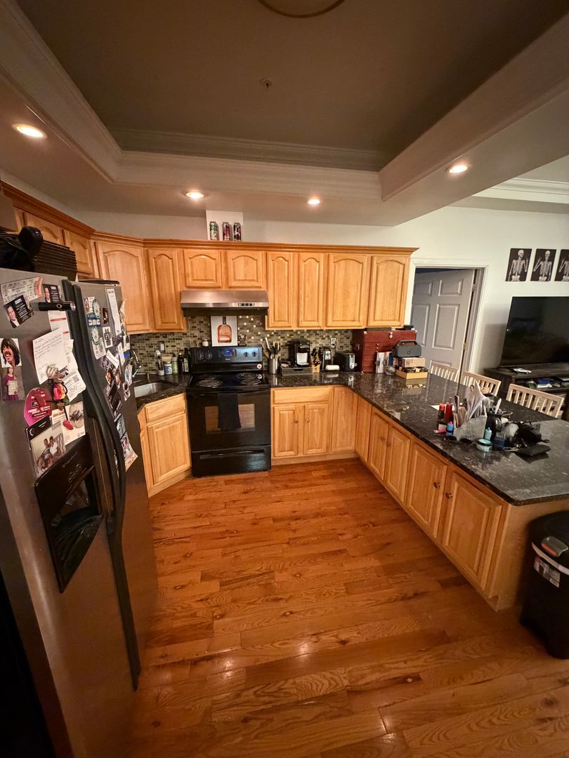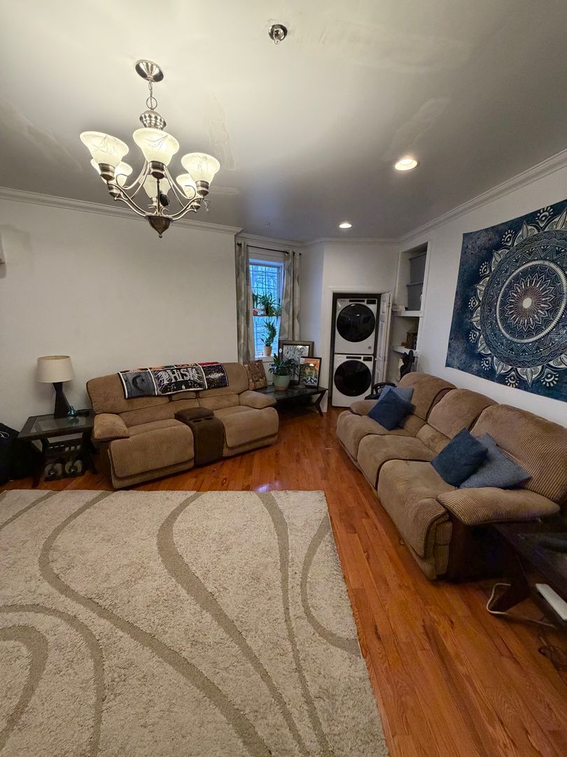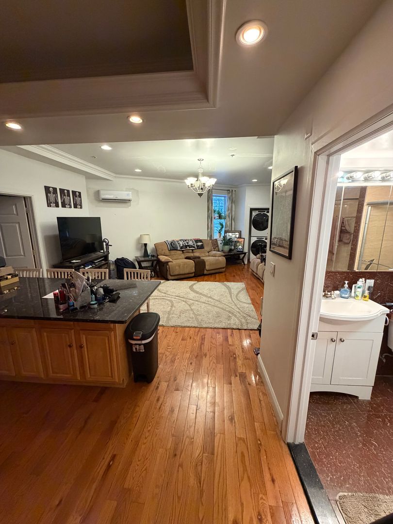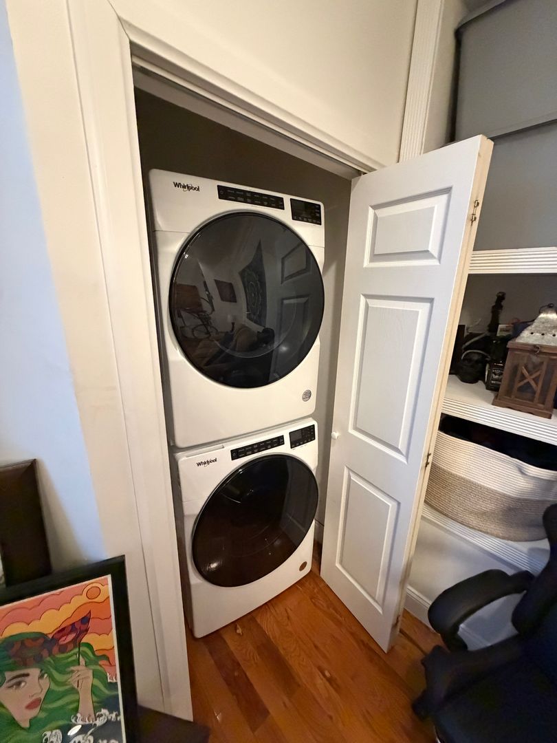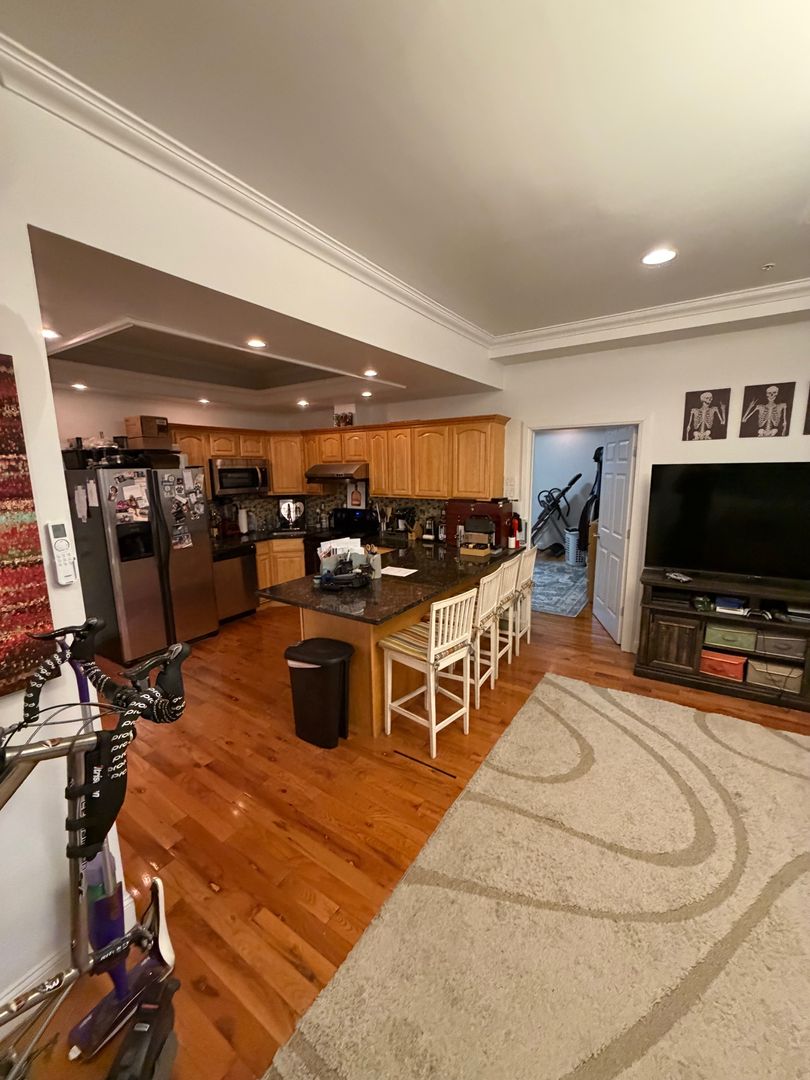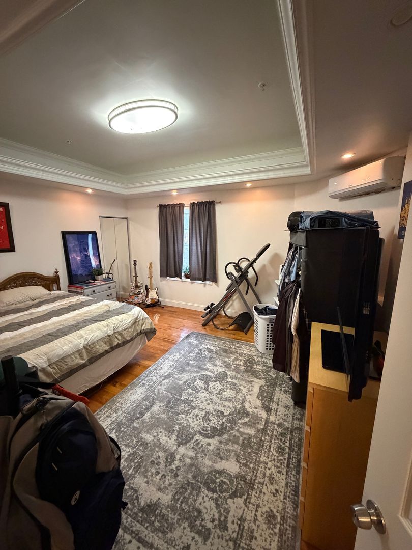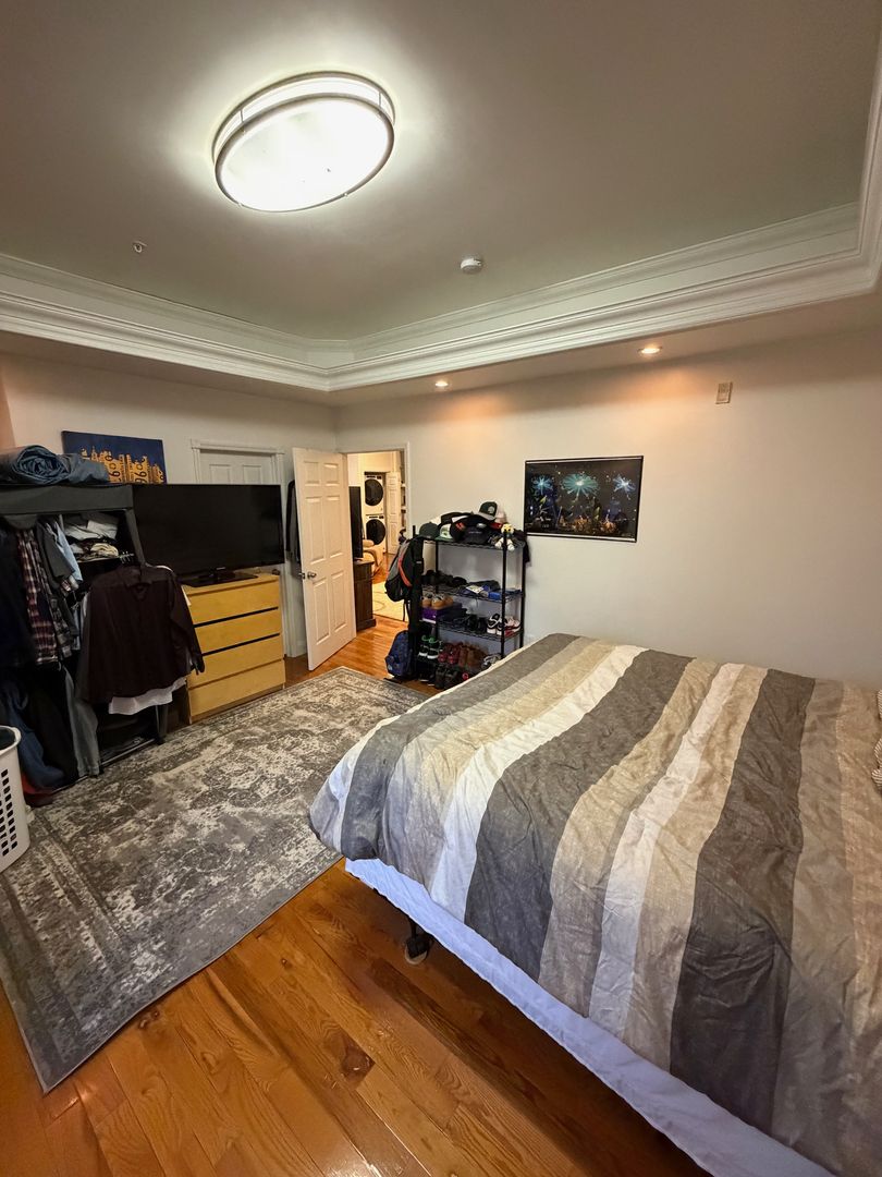 Walk in to a spacious kitchen and living room. Plenty of space for a large couch/entertainment set up and dining table. Kitchen features full size refrigerator, electric range, dishwasher, built in microwave, and garbage disposal. Both bedrooms are spacious with large closets and receive plenty of natural light with great views of the city. Spacious bathroom. In unit washer/dryer! Hardwood flooring throughout and high ceilings! Central HVAC.