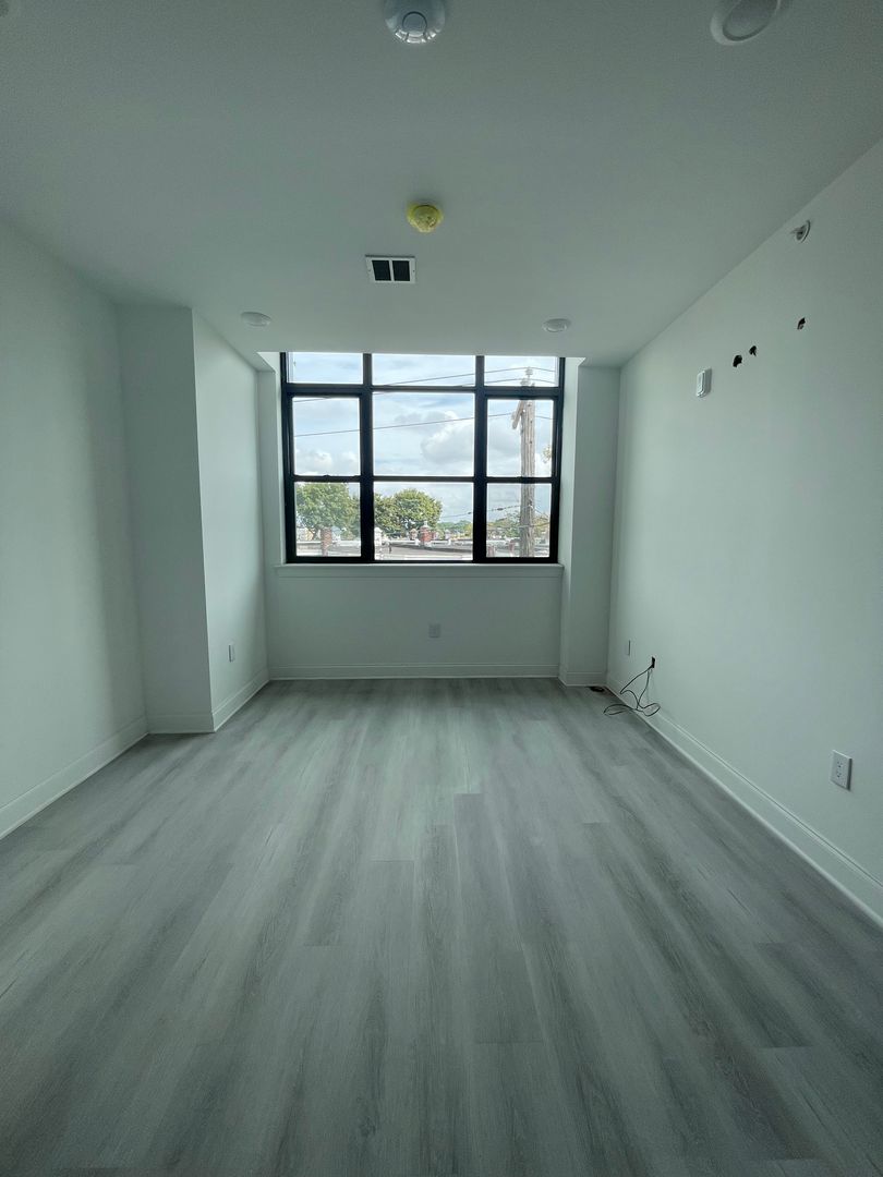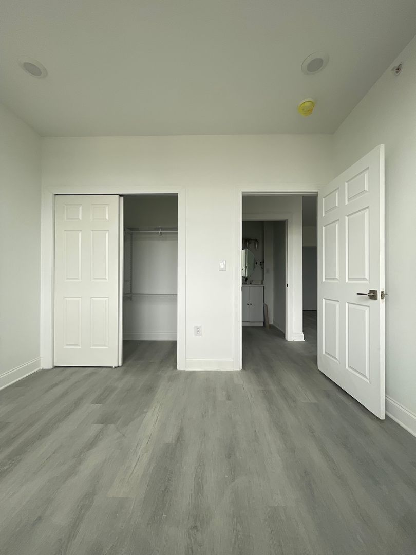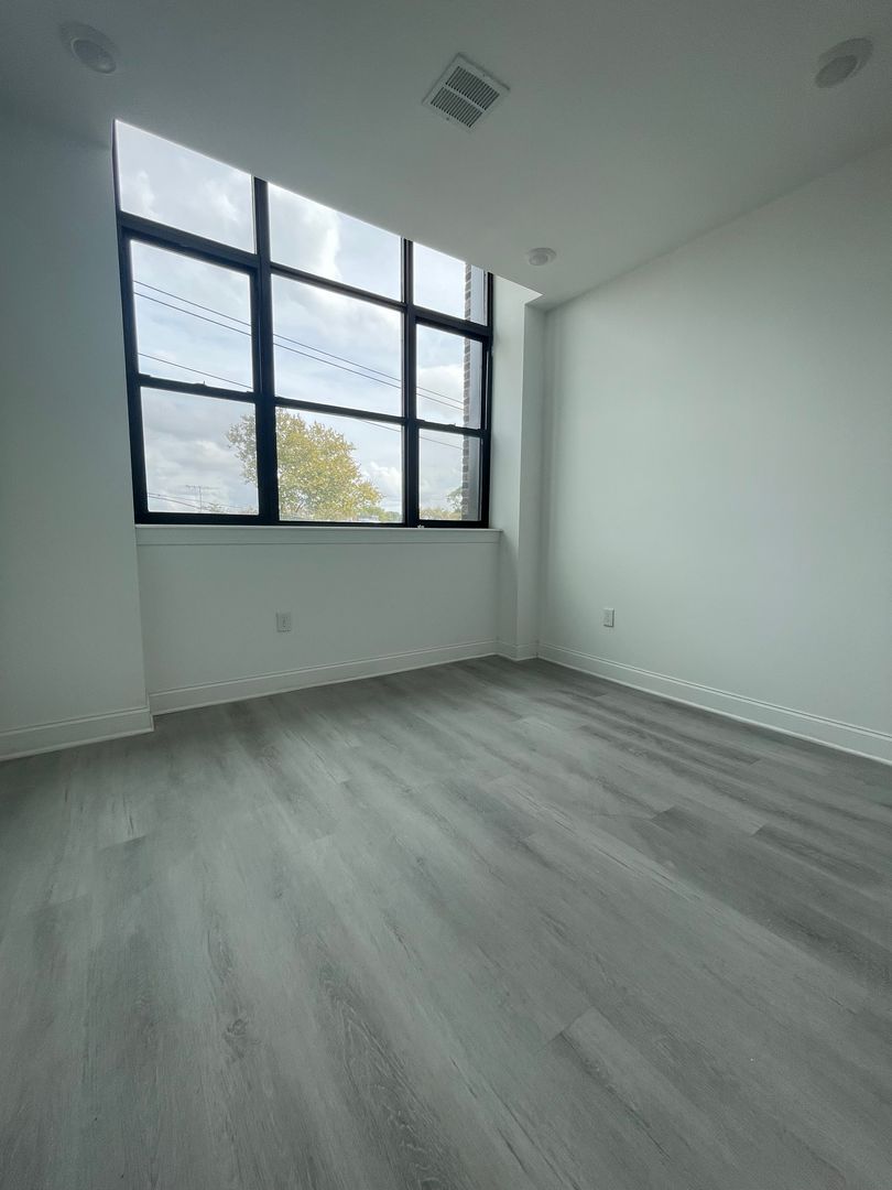 Large bedroom with plenty of closet space for your wardrobe and sneaker collection. Sun drenched bedroom with near to ceiling windows.