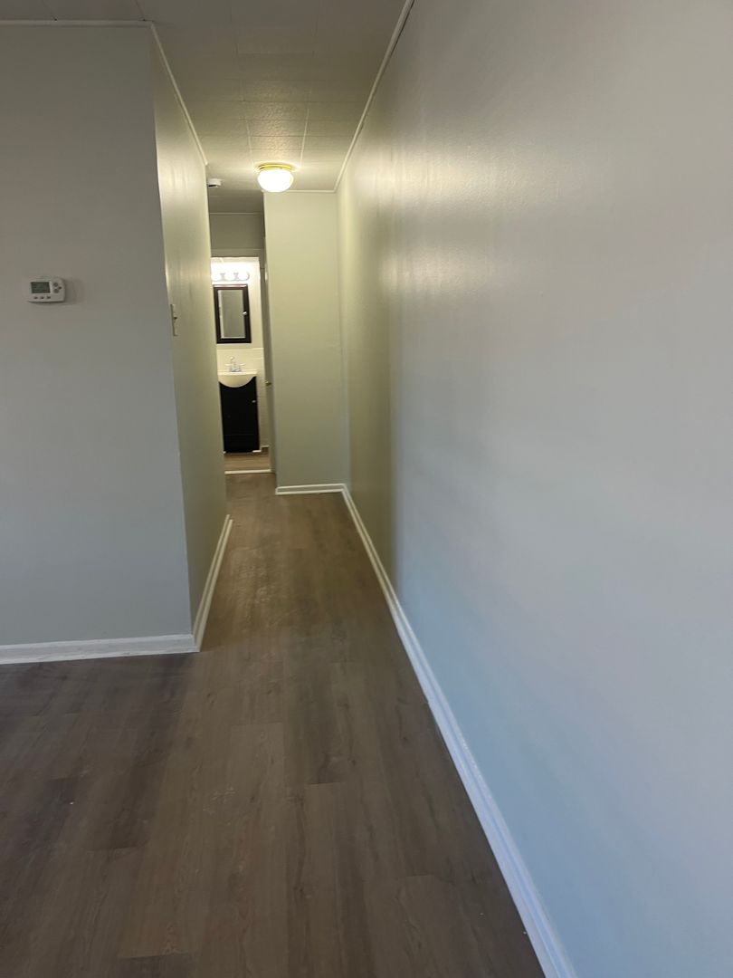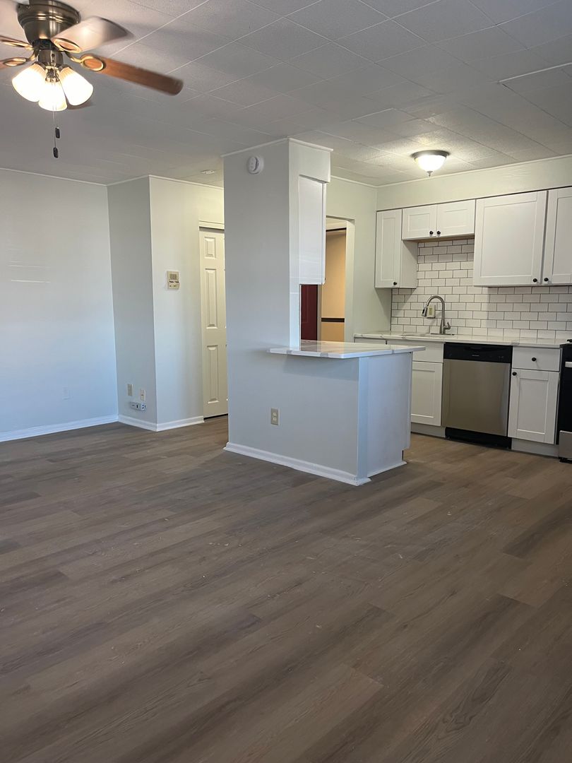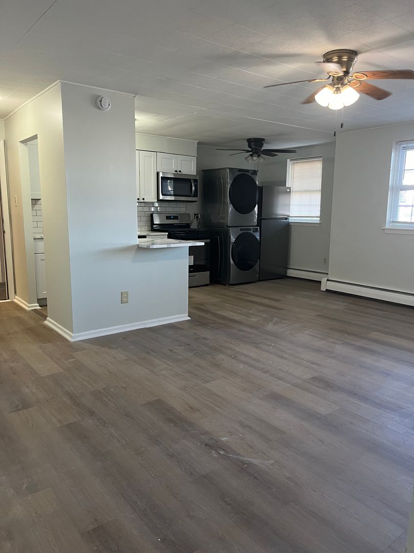 Includes in-unit laundry, private basement storage, parking lot , and flat $65/month utilities (water/sewer/gas).