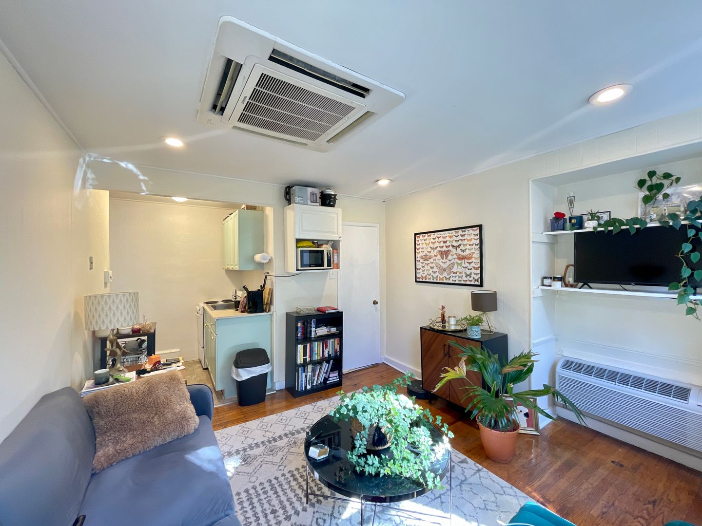 The apartment is a second floor, front-facing apartment that receives great natural light in both the living room and bedroom. The bedroom can easily fit a full/queen size bed in addition to complimentary pieces of furniture (desk, nightstand, etc.). The bedroom has a spacious closet. Cozy living room that is perfect for an entertainment and/or work from home set up! Hardwood flooring throughout. There is also an additional closet in the hallway as you enter the apartment.