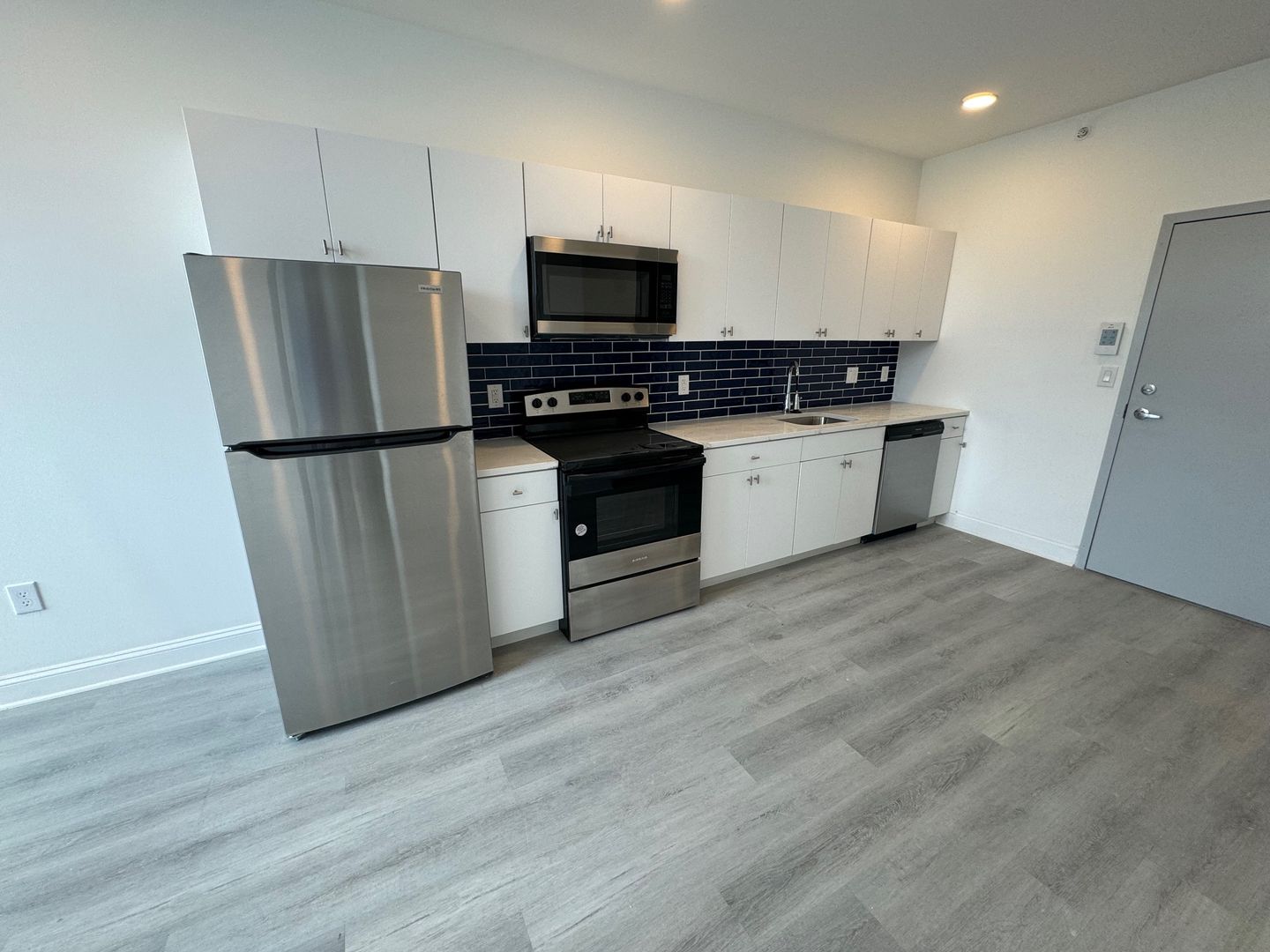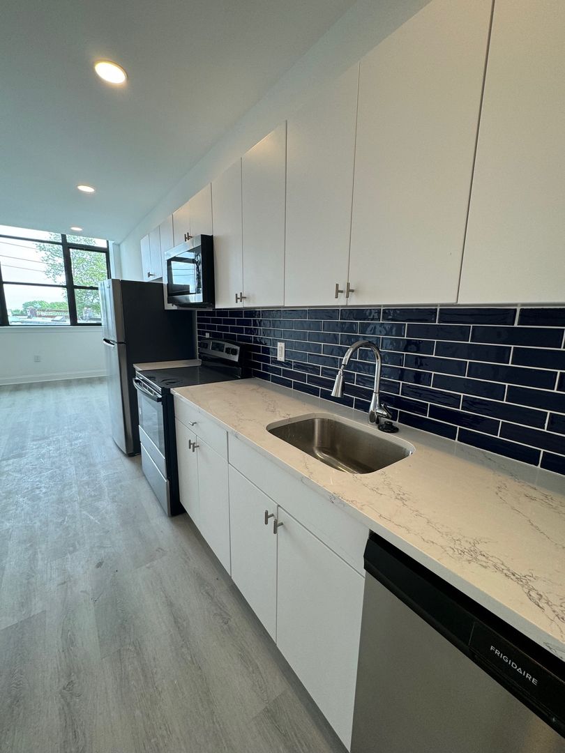 Repurposed warehouse converted into luxury apartments. Enjoy hardwood flooring throughout giving you that classic look and feel. Excellent kitchen with a TON of cabinet space, stainless steel appliances including full sized refrigerator, dishwasher µowave. Sleek kitchen design with modern cabinets, blue tile backsplash and gorgeous granite countertops, perfect to impress family & friends.