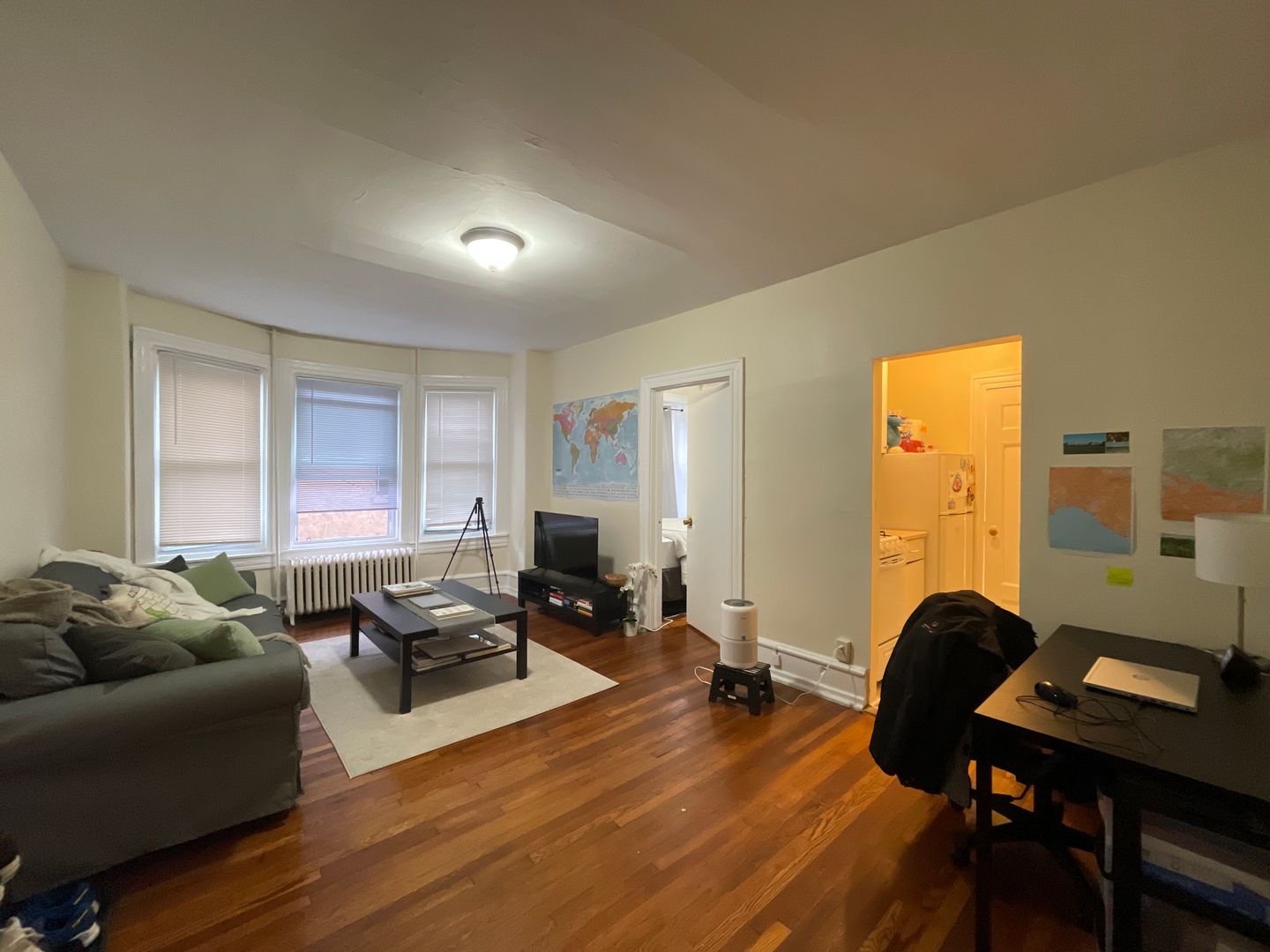 This one bedroom apartment is available for an early September move in! Enter the apartment to a spacious living room that allows for a comfortable entertainment set up as well as a desk for a designated study area! There is also a large closet in the living room. The bedroom can fit a full size bed as well as a dresser/wardrobe. Kitchen features a gas stove and built in microwave. Updated bathroom. Hardwood flooring throughout!