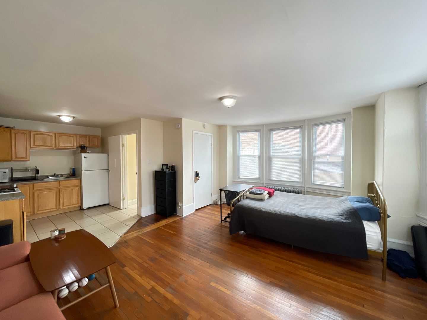 This large, well-maintained 2nd floor corner studio is available for an early September move-in! The apartment showcases tons of windows that flood the apartment with natural light! The apartment features hardwood floors throughout, except for the kitchen and the bathroom which are ceramic tile. Large living space allows for a comfortable arrangement of sizable bed, couch, and work/dining set up. There is one large closet in the living space. Laundry services located on site.