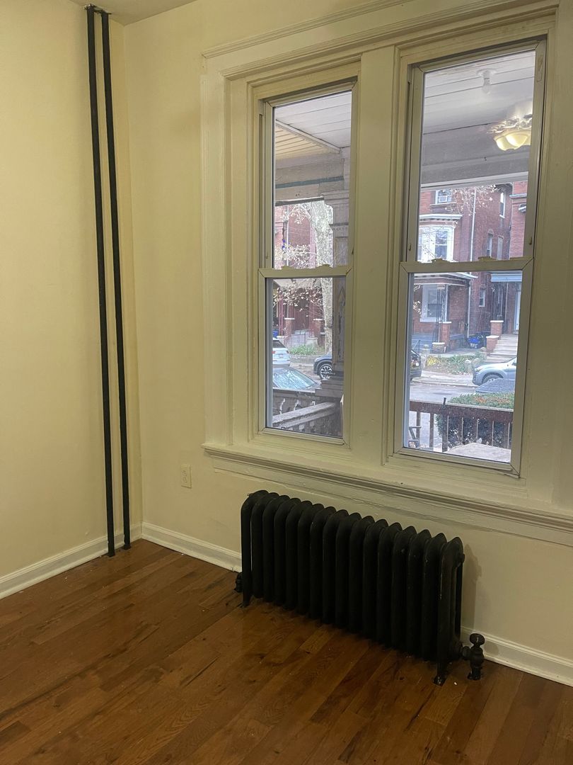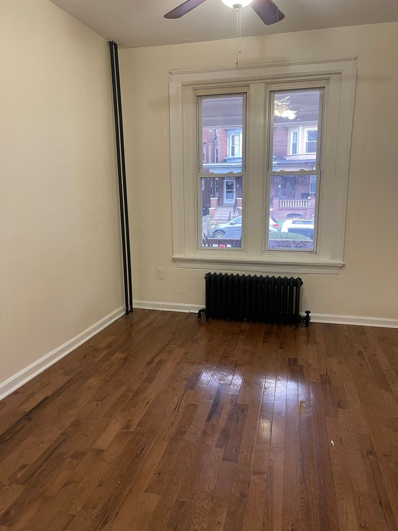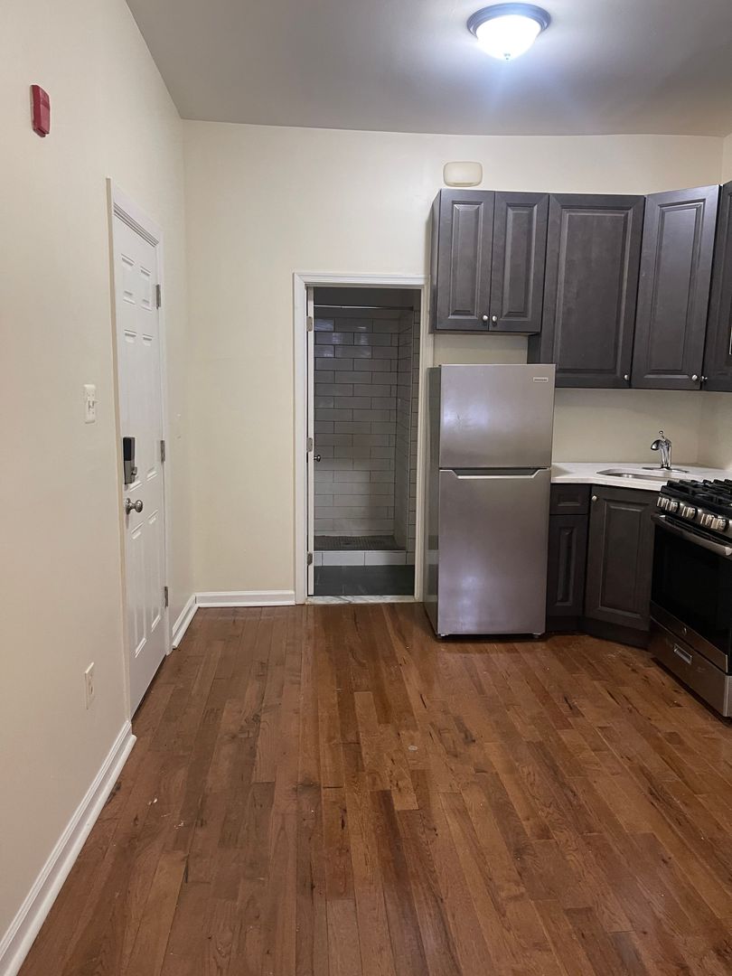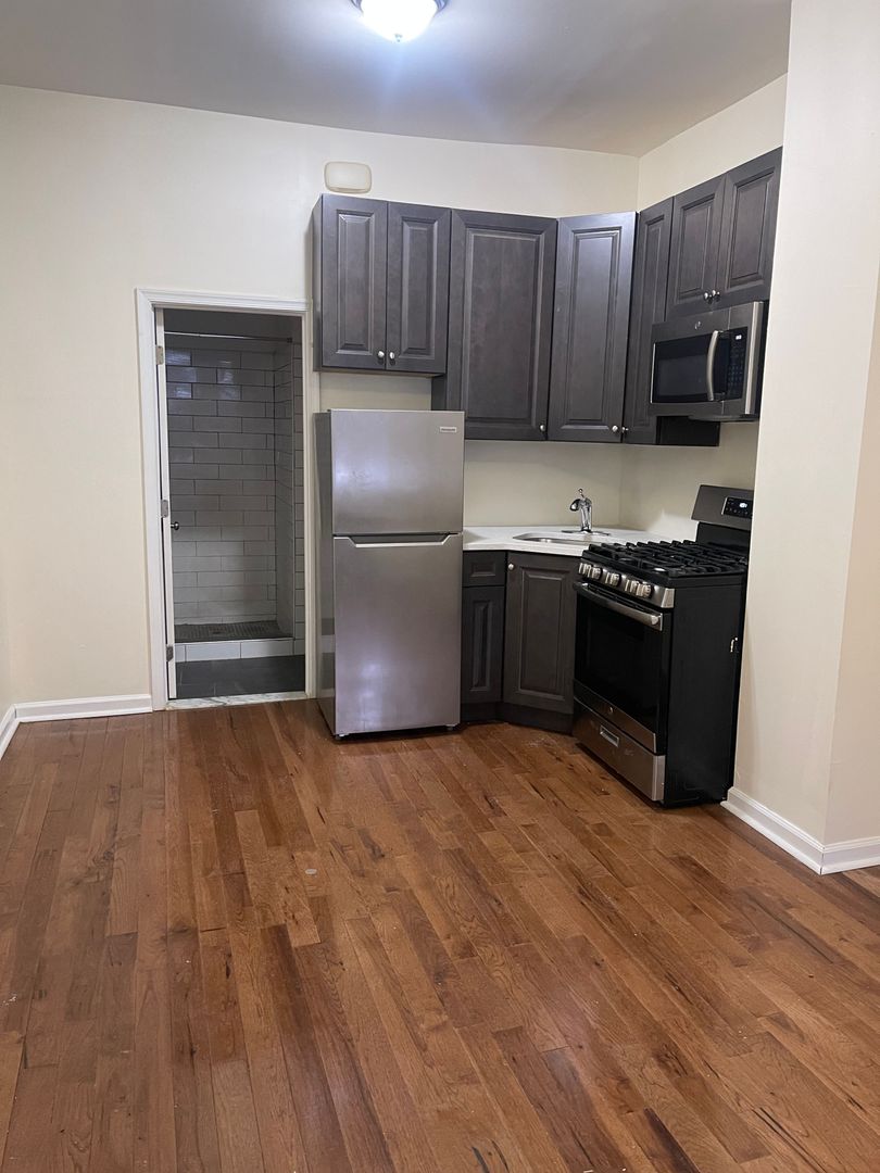 Kitchen features newer appliances, renovated cabinets and counters. New hardwood flooring throughout. Heat, water, trash disposal and Wi-Fi are a flat rate of fee of $100. Tenant responsible for their own gas and electric bill based on usage. Coin operated laundry available for residents in building.