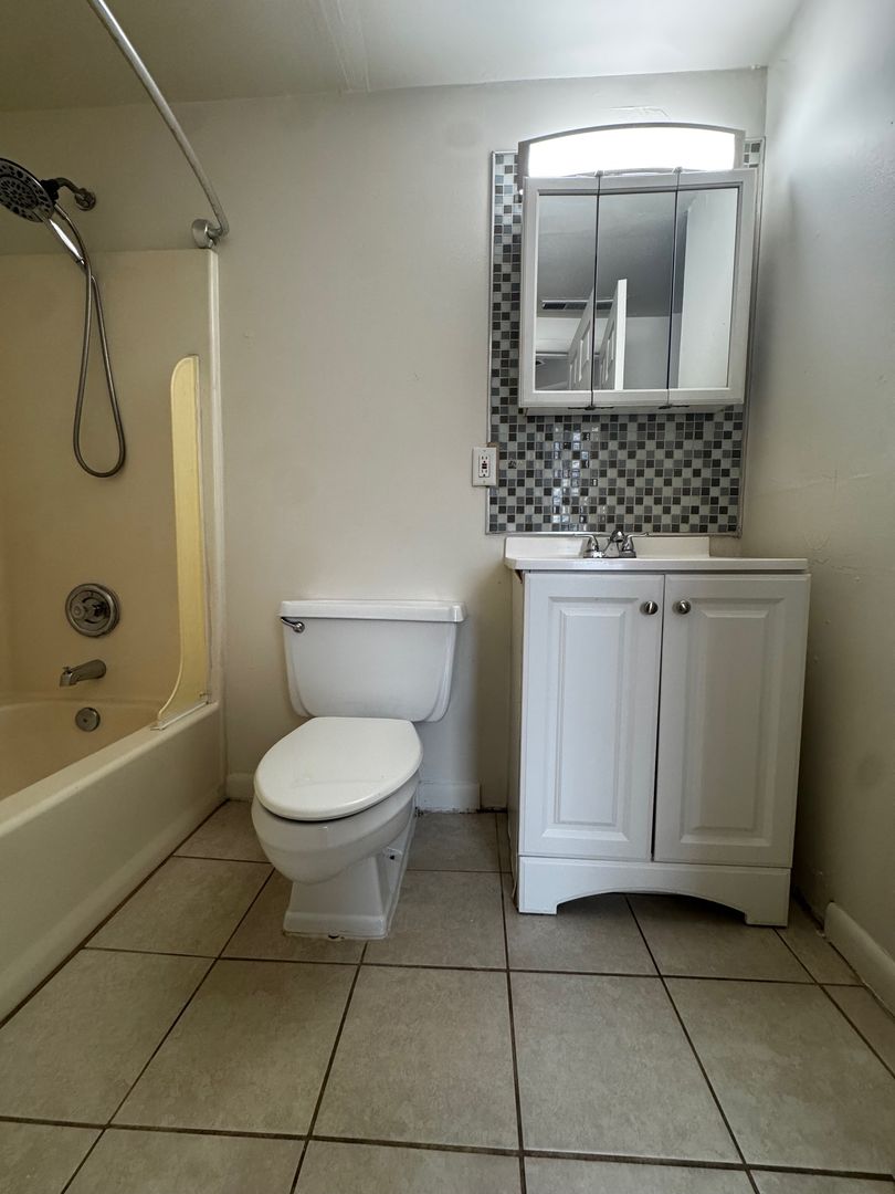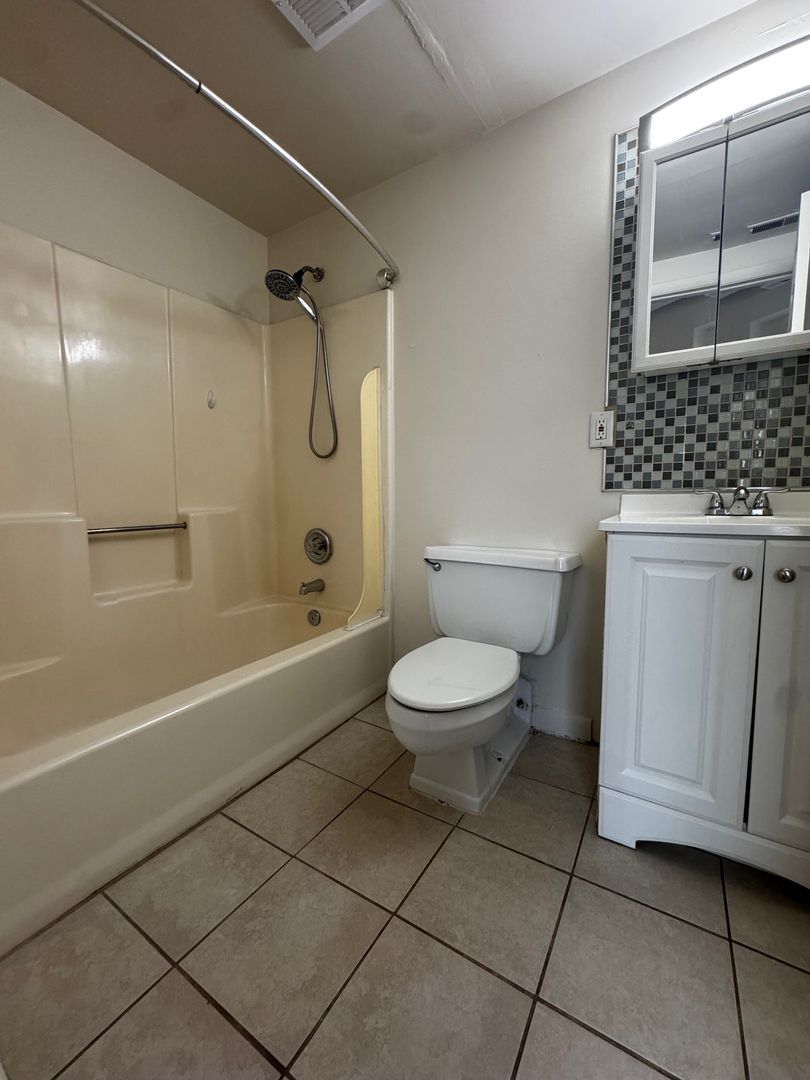 - Renovated bathroom with modern fixtures and tile.