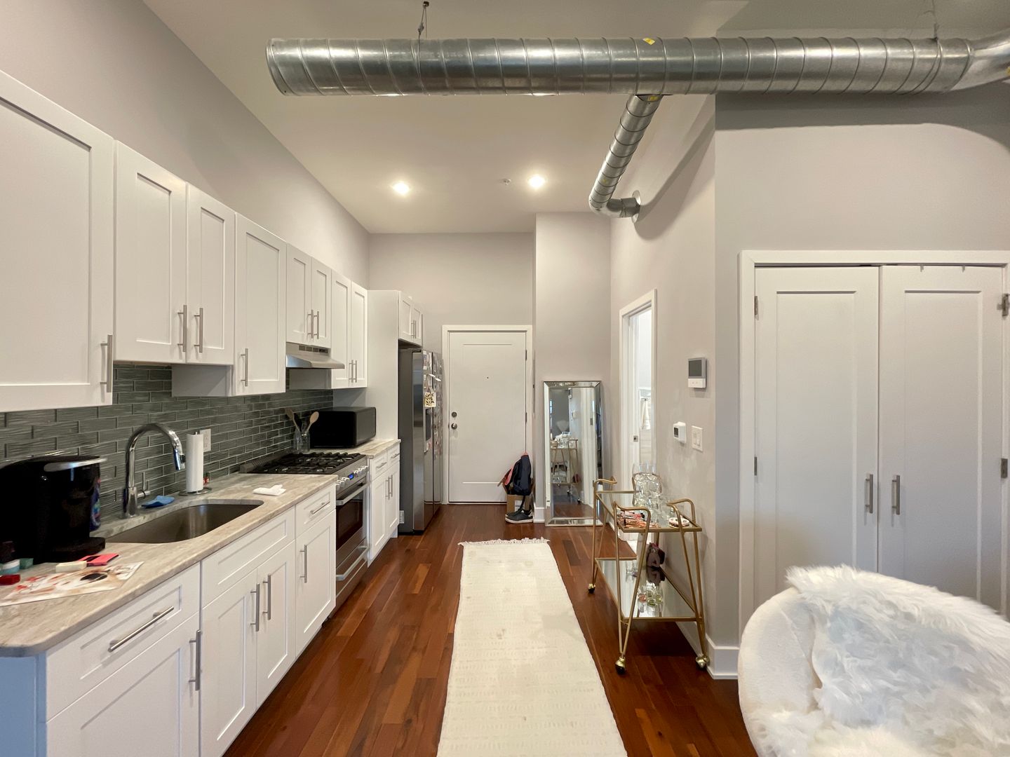 No dollar was spared for these beautiful apartments. Hardwood flooring throughout, high end cabinets, granite countertop, stainless steel appliances, in unit washer/dryer, central HVAC, two large-double door closets, recess lighting and natural lighting, exposed brick and wooden beams and much more!